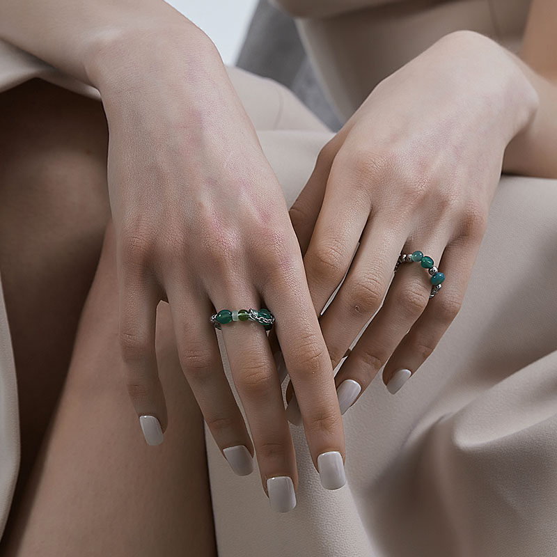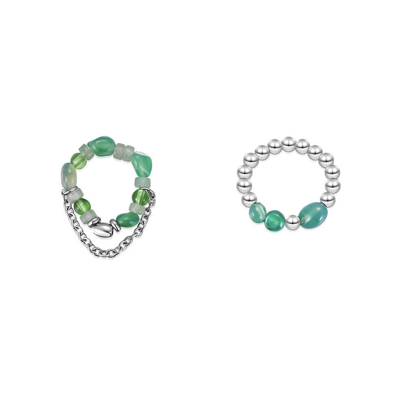 KITSH绿天然石串珠戒指女小众ins欧美冷淡风个性时尚高级潮酷软戒