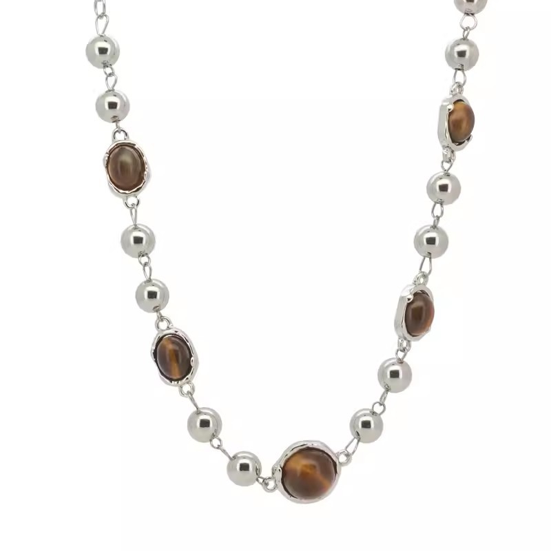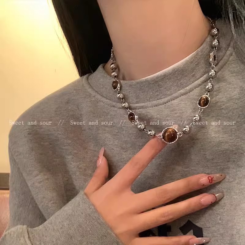 美拉德虎眼石项链轻奢小众高级感法式复古锁骨链2024年新款脖颈链