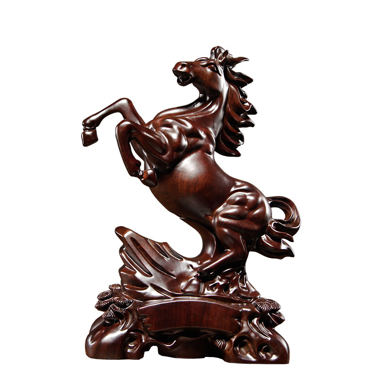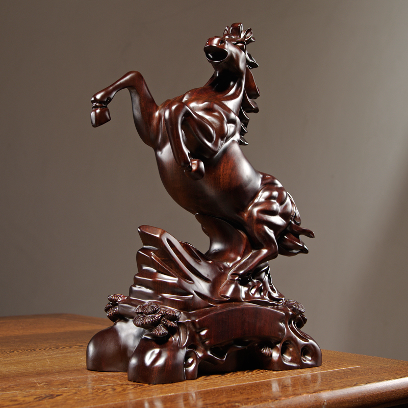 黑檀木雕马到成功摆件实木质生肖马家居客厅装饰摆设开业工艺礼品