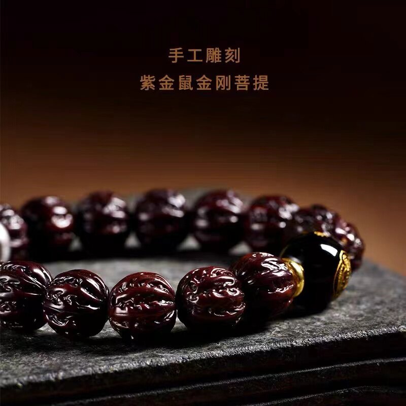 招财紫金鼠雕刻京八棱菩提猴头核桃手串生肖本命佛男款守护神手链