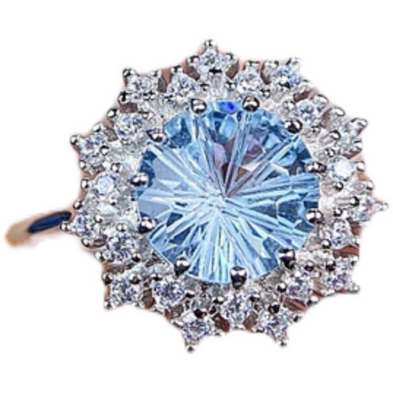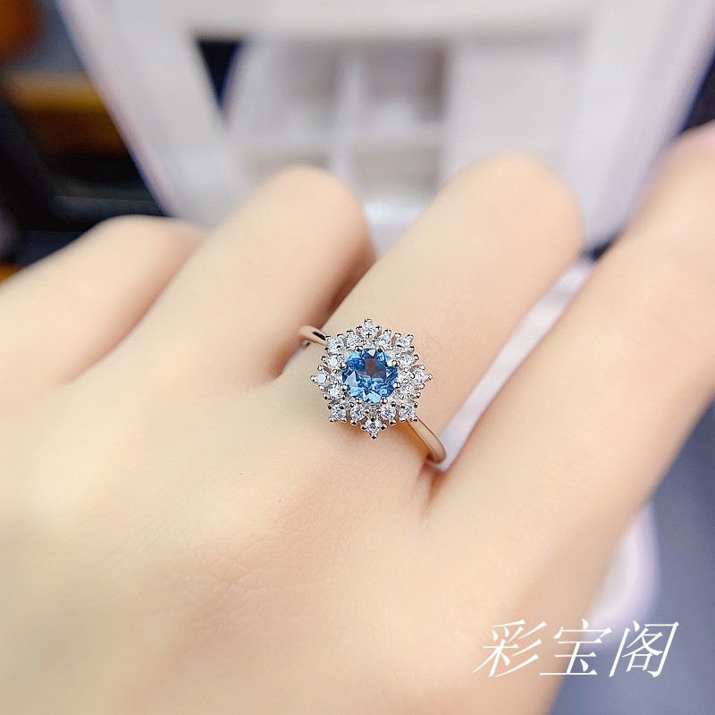 s925银戒指空托圆形5*56*68*8mm雪花款活口戒指托时尚镶嵌托帕石