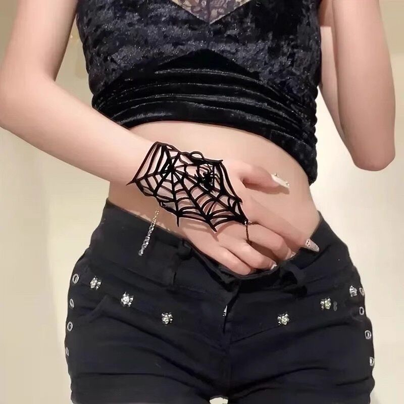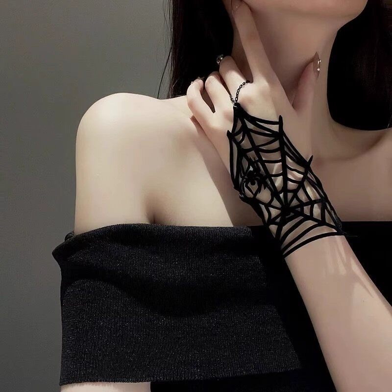 万圣节夸张黑色蜘蛛网手环女亚文化暗黑复古装扮手饰拍照手指链