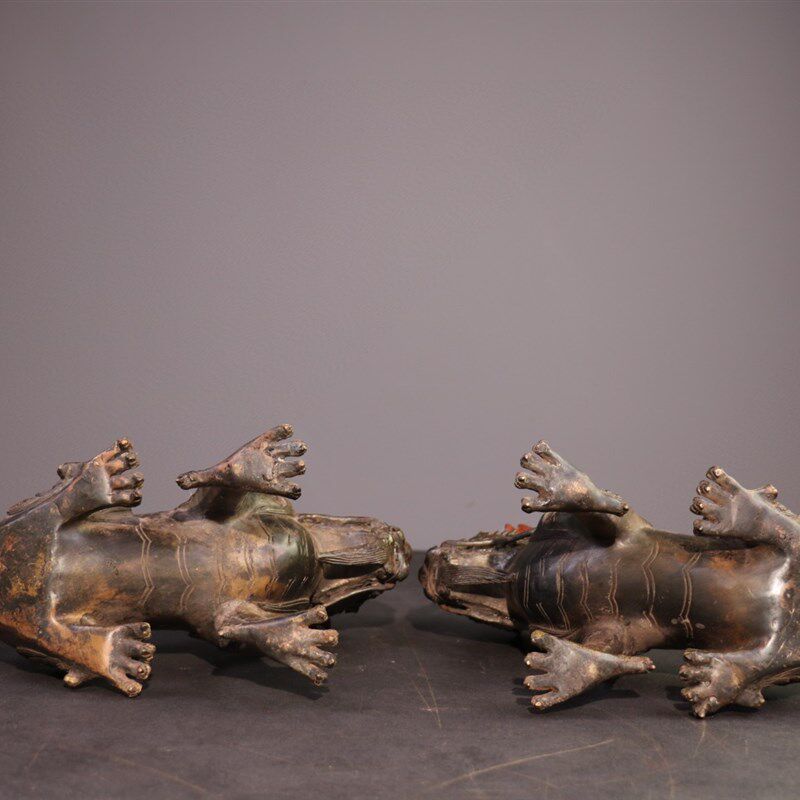 古玩杂项收藏纯铜l泥金麒麟瑞兽摆件玄关商铺居家饰品办公书案