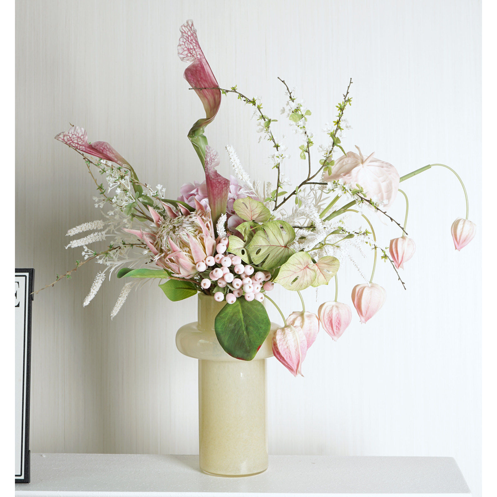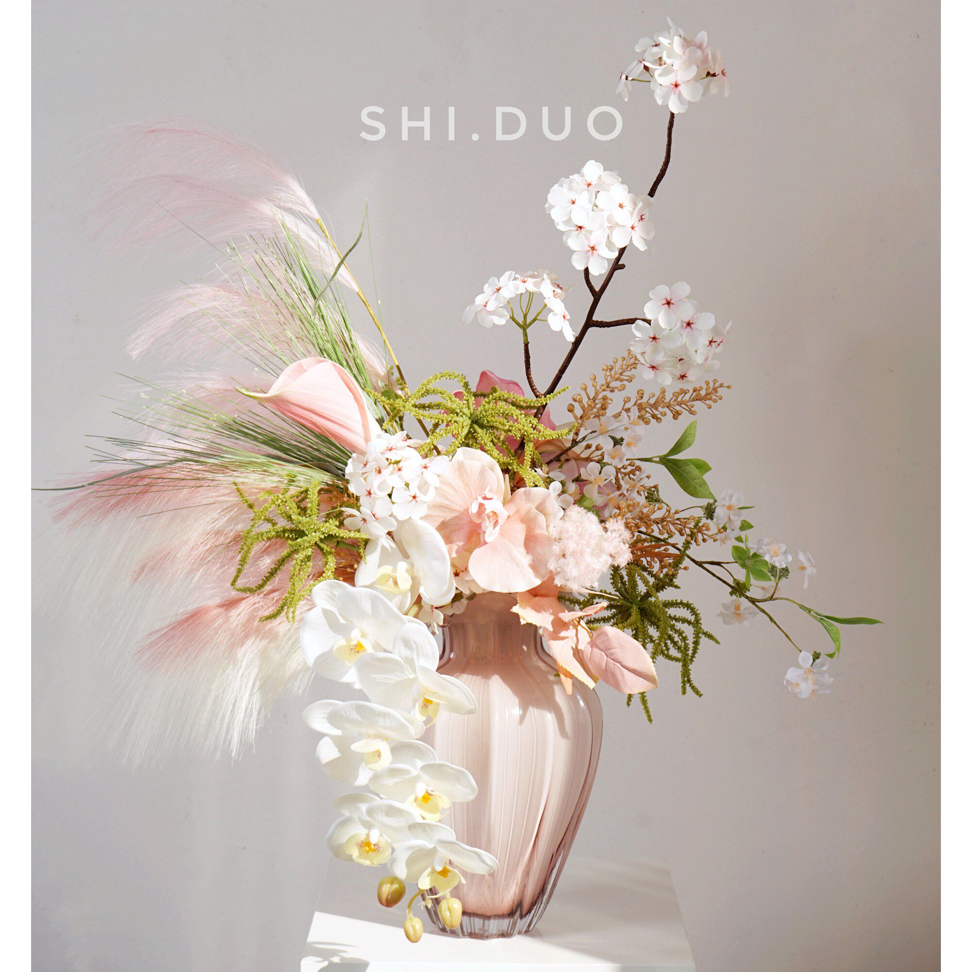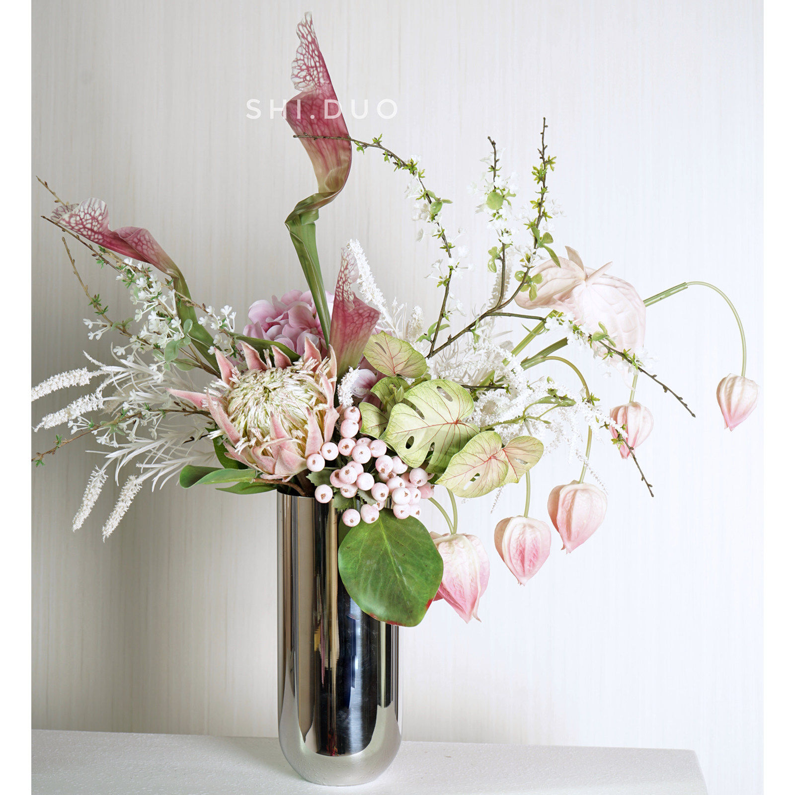轻奢花艺摆件粉绿色彷真花帝王花束样板软装客厅前台玄关桌面摆设