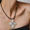 SUDROV素觉花谧系列海水贝壳黑色真皮秋冬项链毛衣链女新年礼物
