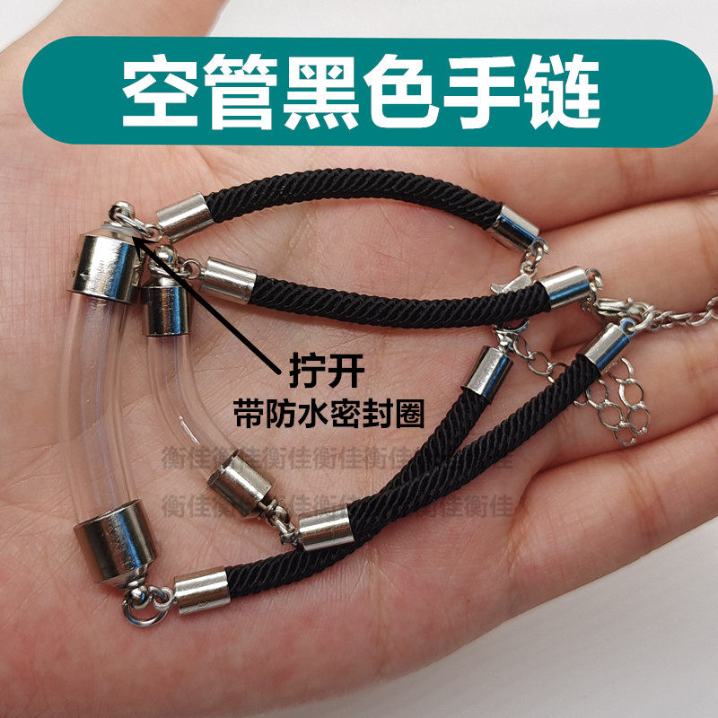 透明嘎乌盒 空心可打开装东西放天然朱砂瓶 男女福管黑色红绳手链