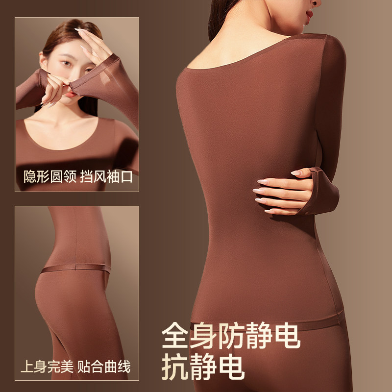 思氧山茶花保暖内衣女薄款隐形肌底美肤衣秋冬生姜秋衣秋裤套装