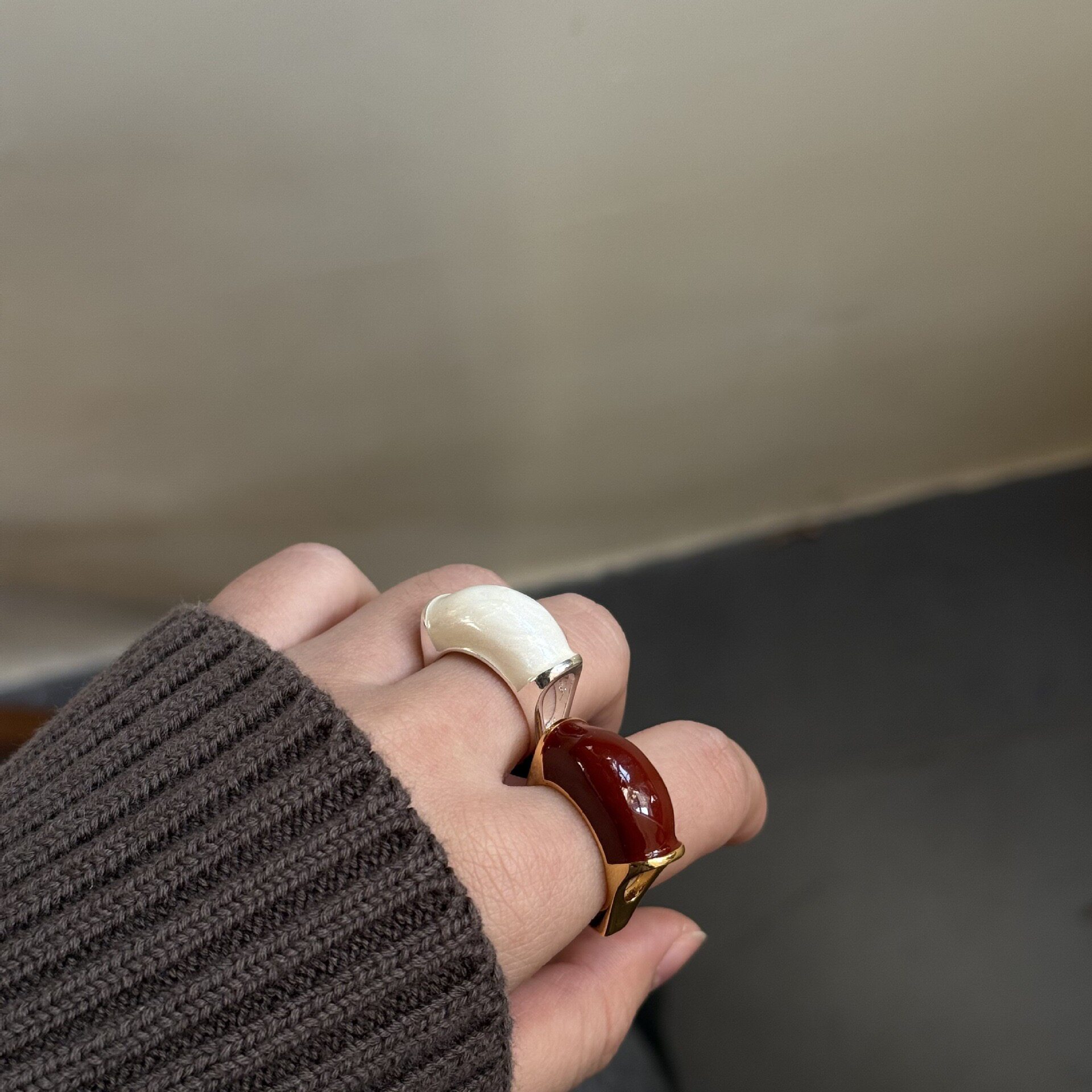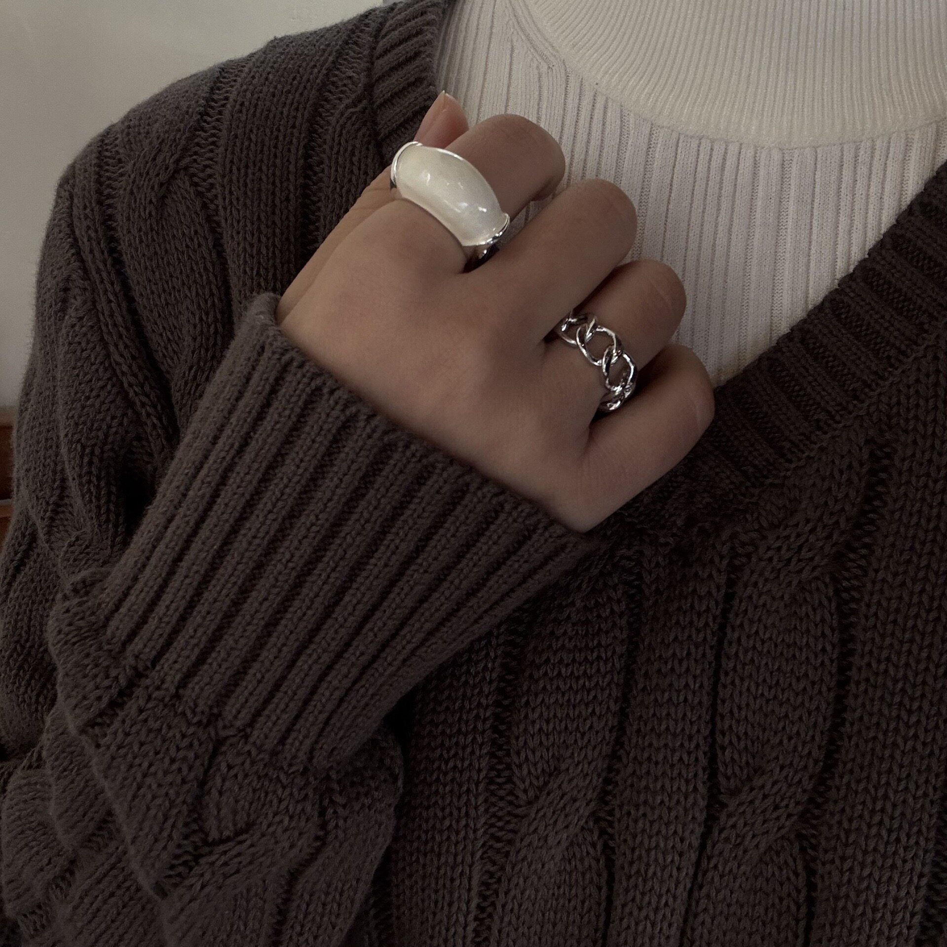 秋冬滴油不规则弧形戒指女简约ins小众设计港风复古感食指戒开口