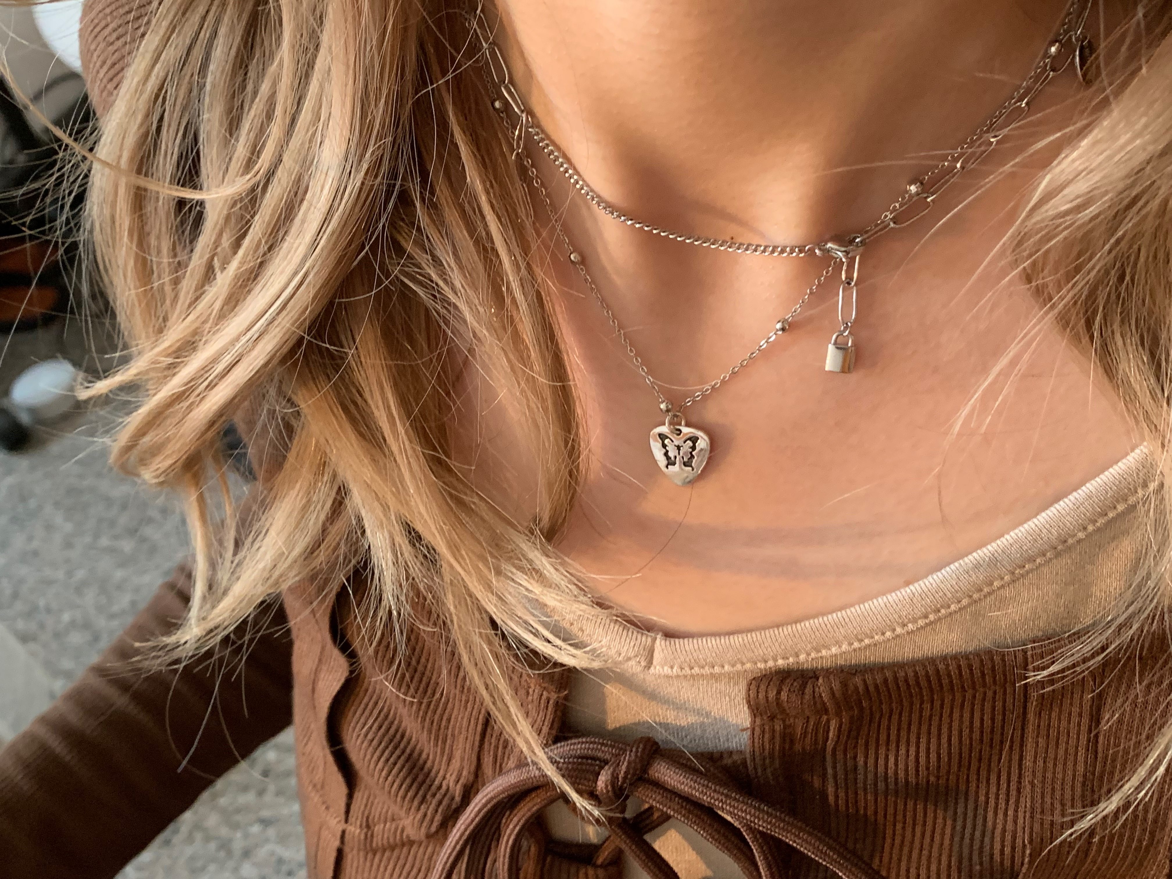 蝴蝶吉他拨片项链锁骨链小锁吊坠叠戴Y2K风格气质百搭小众个性