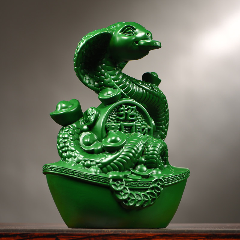 绿色木雕蛇摆件实木十二生肖蛇动物眼镜蛇家居客厅装饰红木工艺品