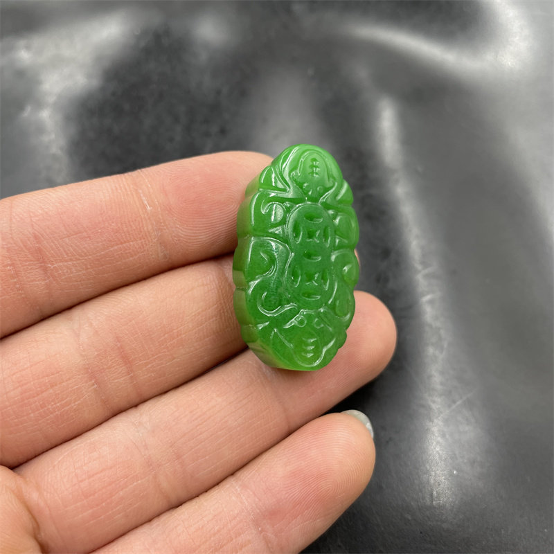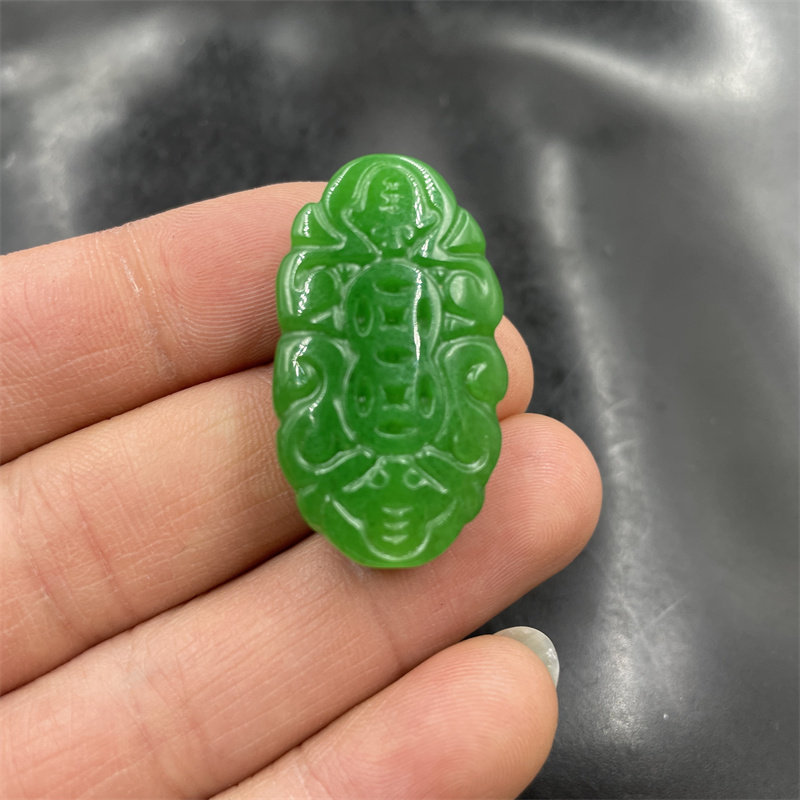 华夏美玉 满绿色马来玉福在眼前吊坠 干青玉挂件 玉坠