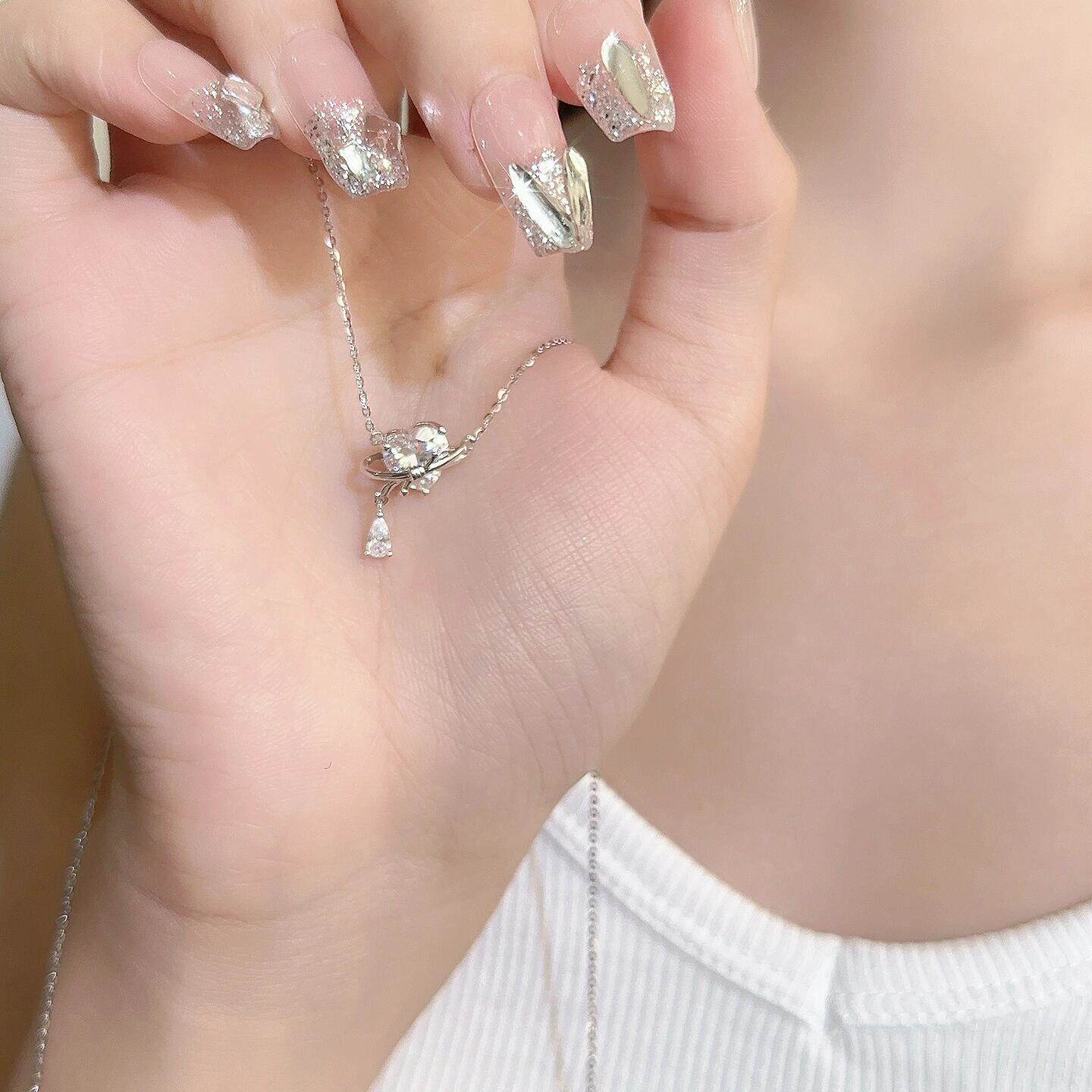 「甜心少女」爱心项链轻奢小众设计项链银女士纯银999情人节礼物