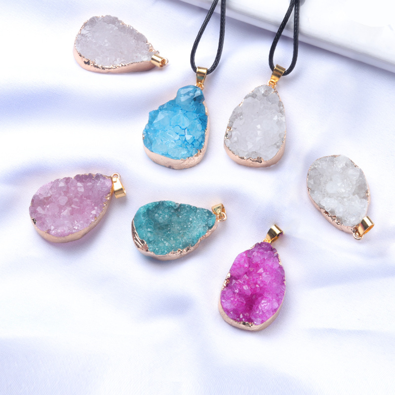 1621-30~40mm天然白水晶簇不规则水滴形鎏边吊坠DIY饰品配件批发