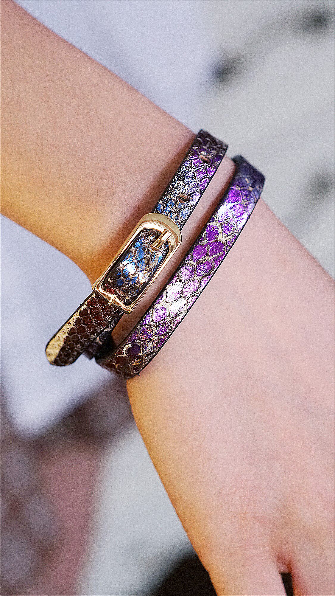 诊疗师手工定制 紫彩斑斓真皮颈环choker项圈手环两用女蛇皮小众