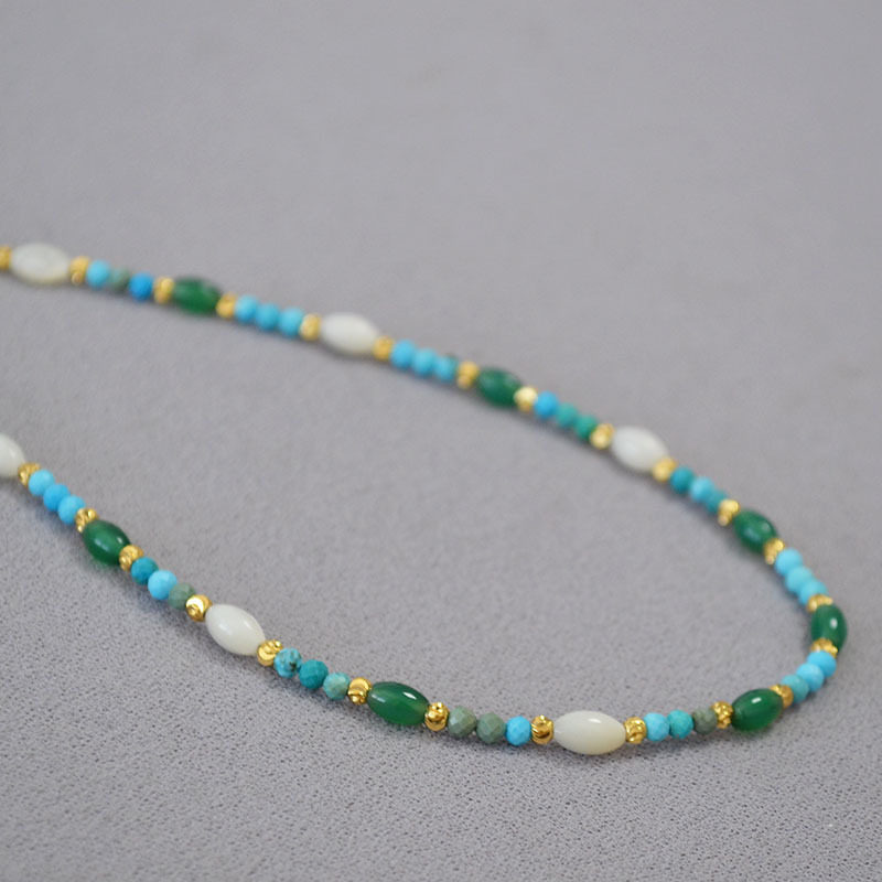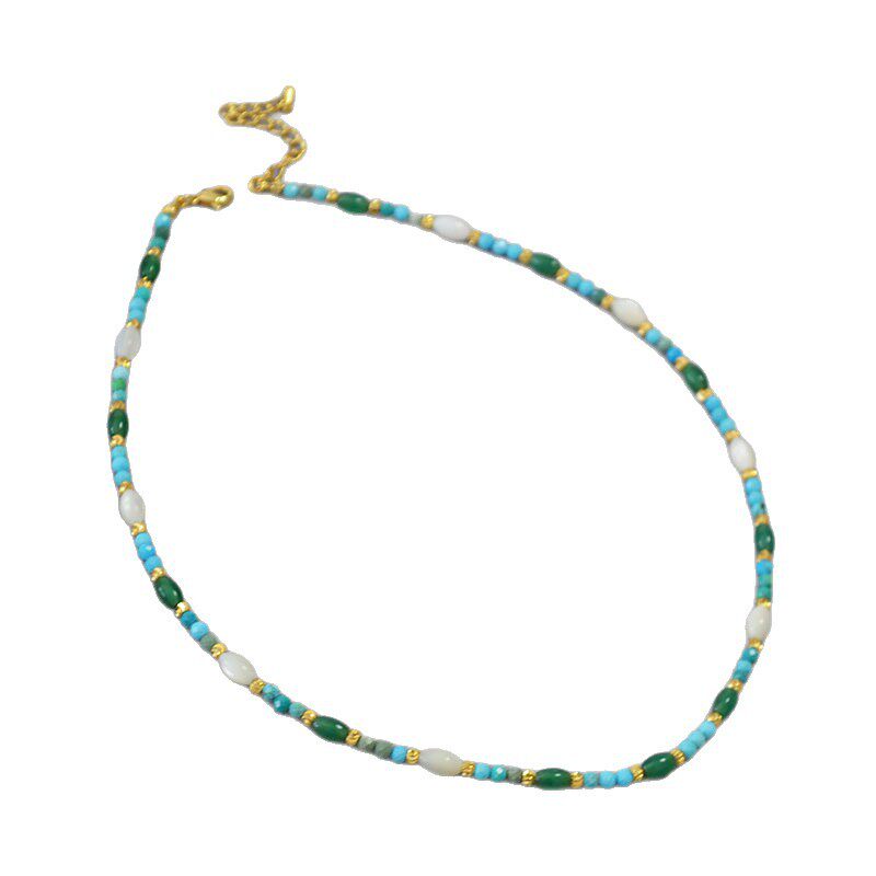 法式优雅浪漫小众设计清新蓝色松石白色贝壳米珠串珠简约气质项链