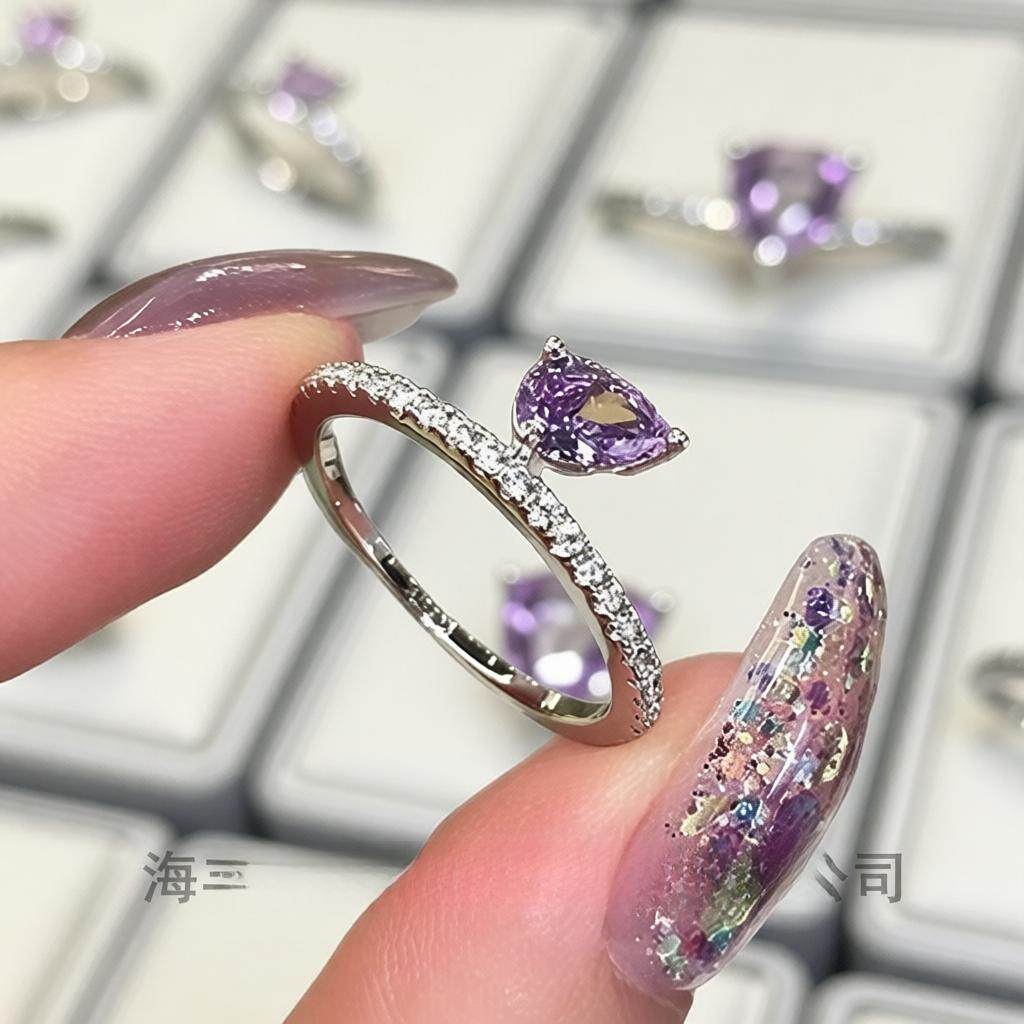 法式复古高级浪漫紫色水滴爱心排钻戒指叠戴设计精致百搭气质指环
