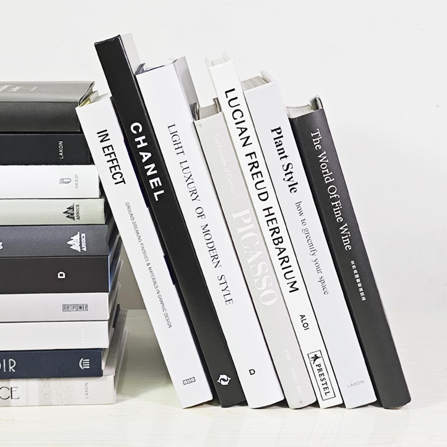 样板间真书可阅读酒店售楼处书房黑白灰色软装饰品英文道具书摆件