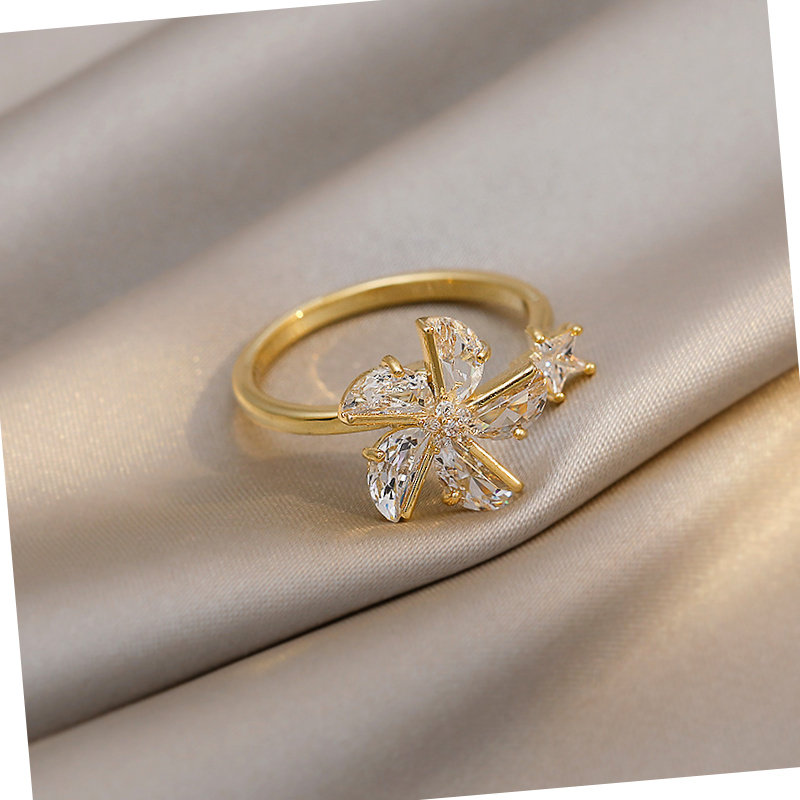 跨境爆款闪钻风车可转动戒指旋转食指戒网红时尚开口指环一件代发