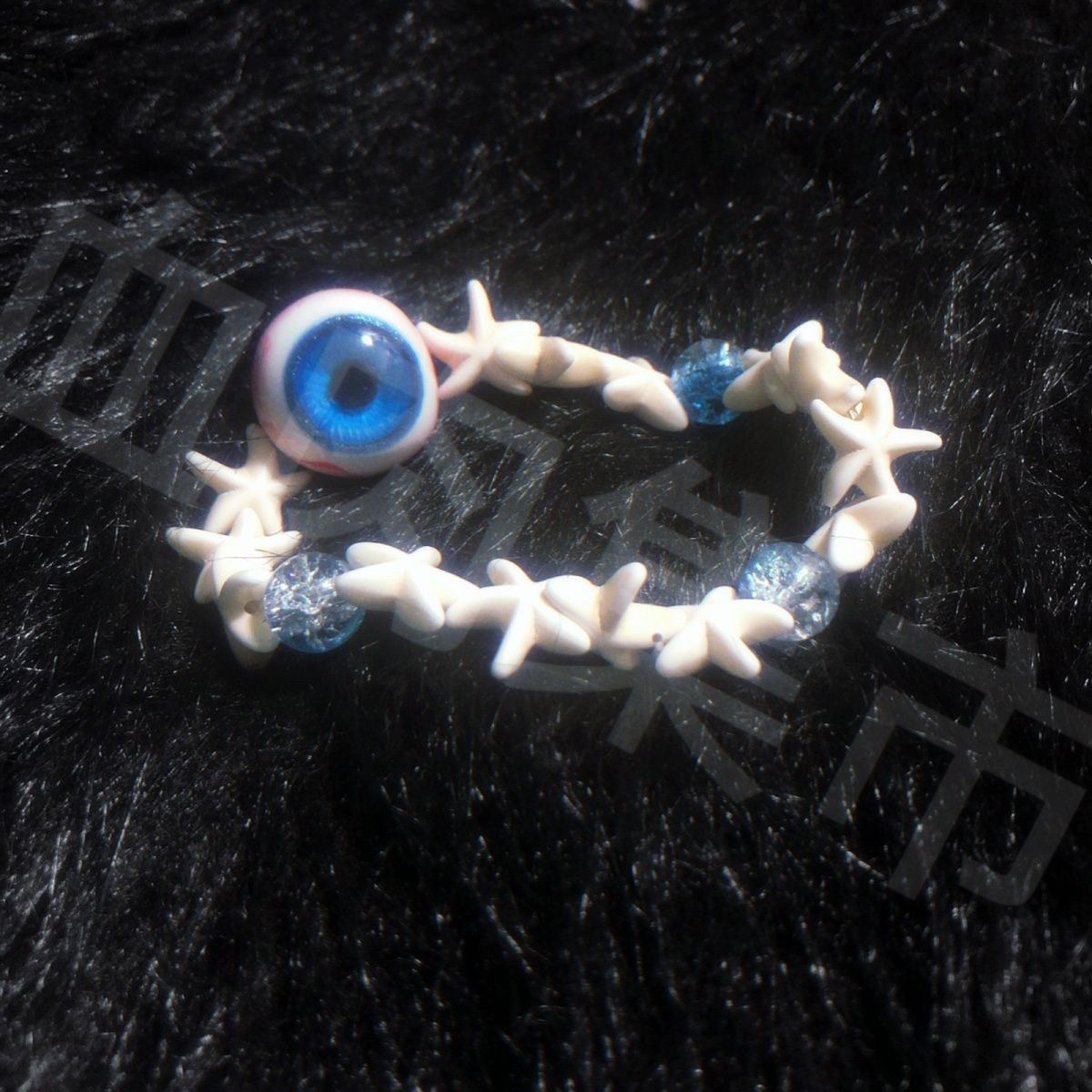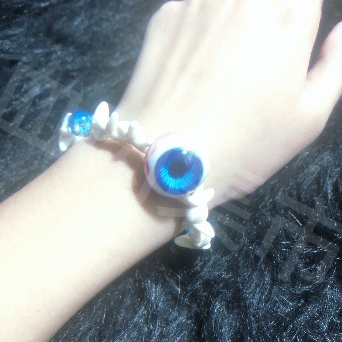 海骨原创手链琉璃珠子仿真眼球小众饰品学生蓝色闪粉眼球高颜值