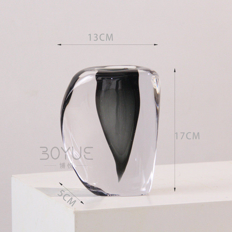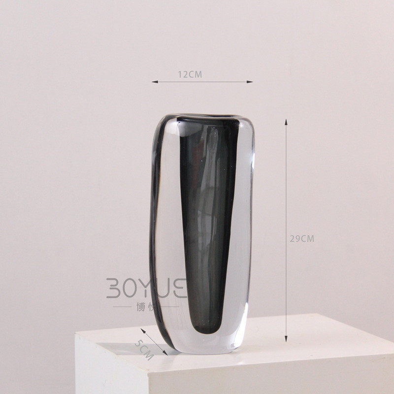 极简意超厚烟灰色式琉璃花瓶样板间民宿客厅餐厅创意软装饰品摆件
