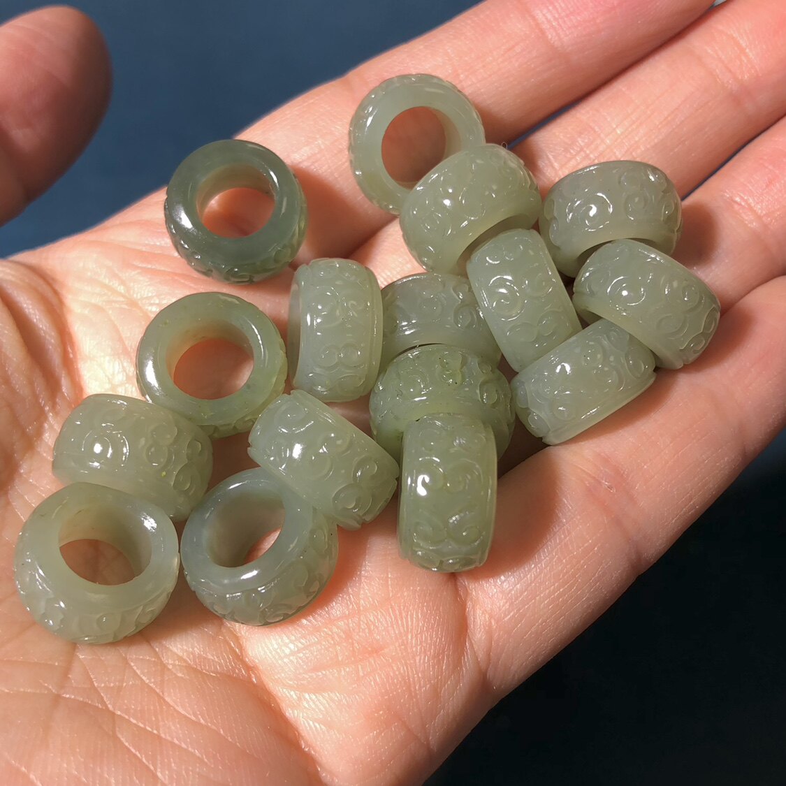 GG0815 天然和田玉冰清水雕刻祥云如意跑环diy手链佛珠文玩配饰