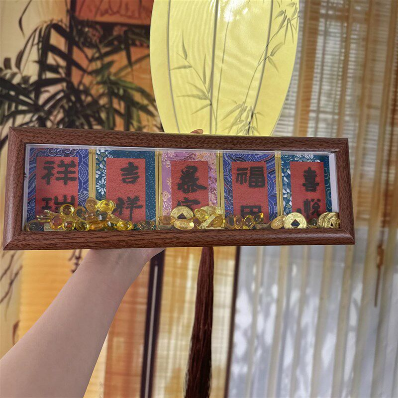 普陀山书院禅一亲笔五福相框摆台大师手写手绘书法桌面家居摆件