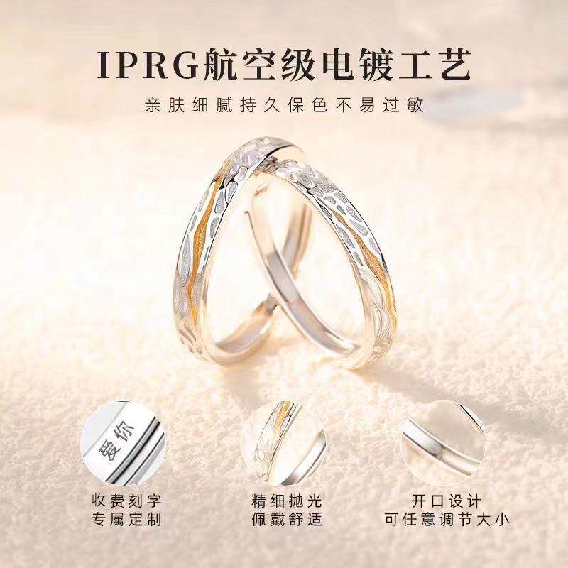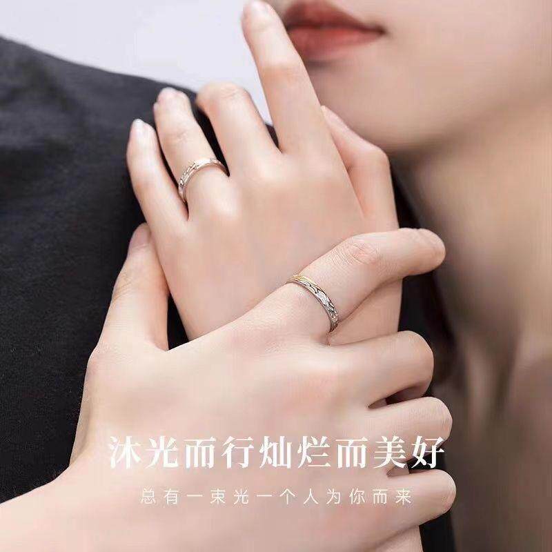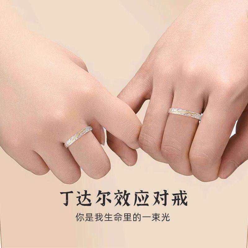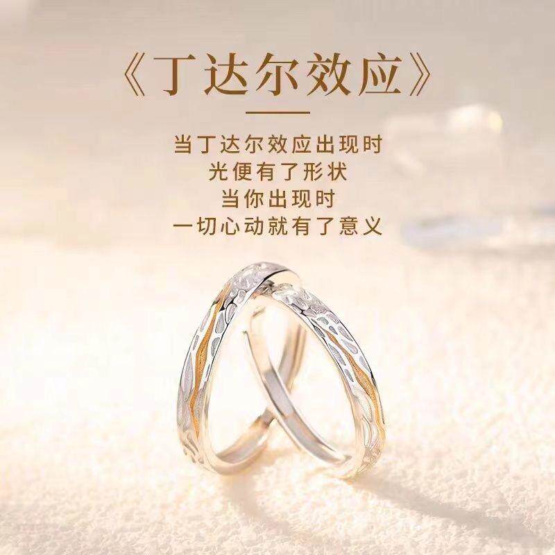 丁达尔效应百搭情侣戒指高级小众简约素圈戒指设计女友礼物可调节
