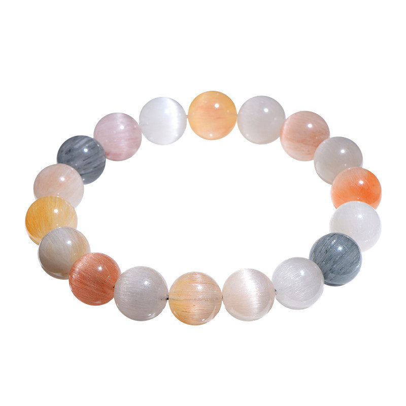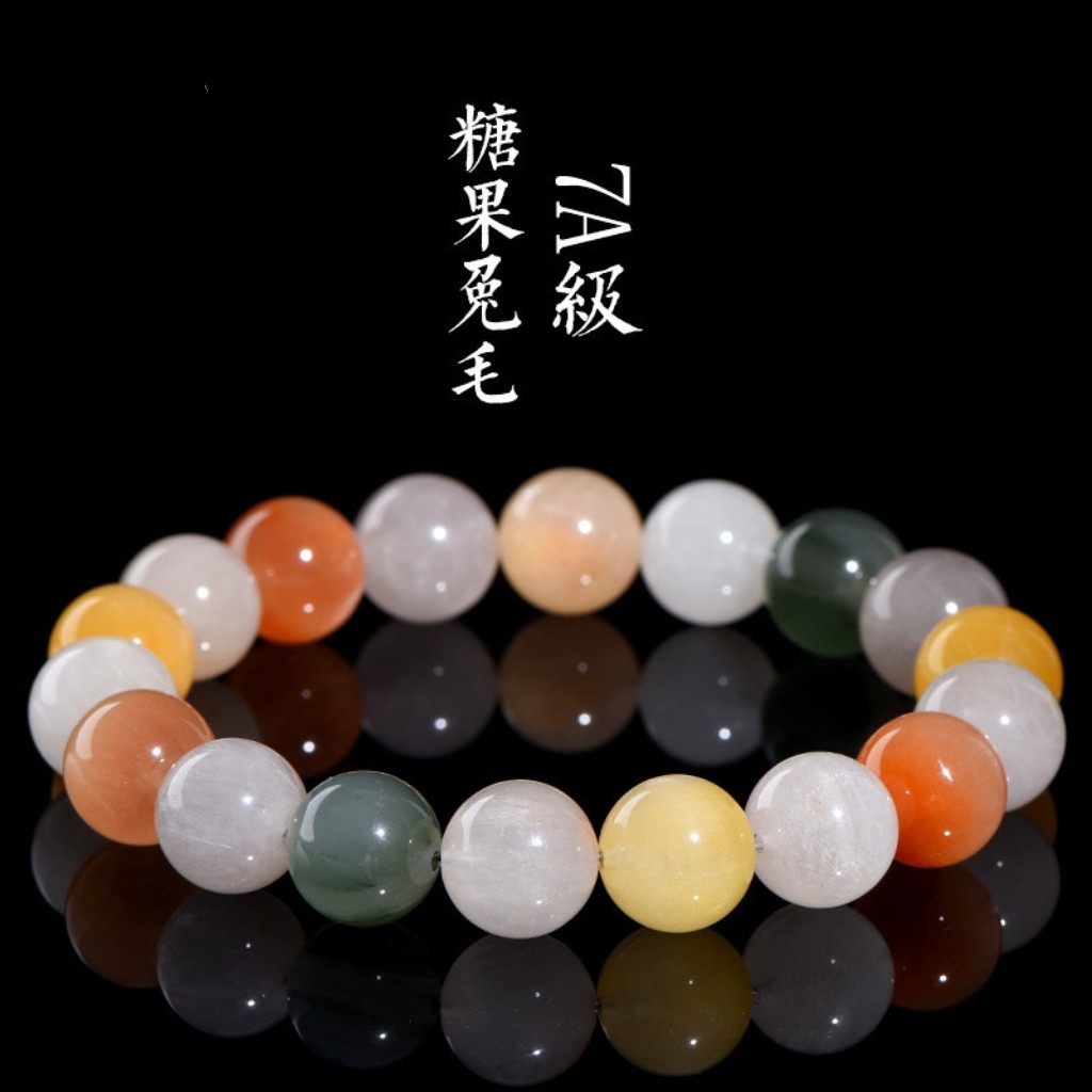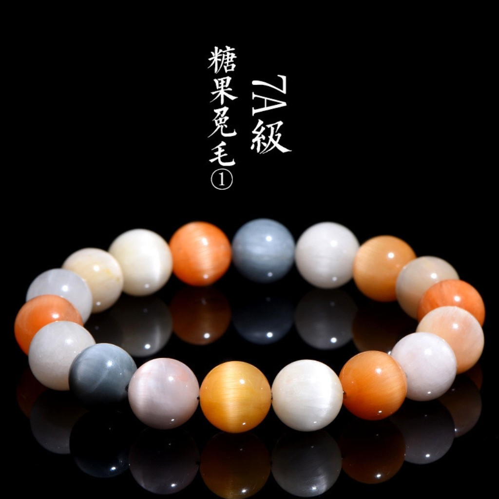 盖亚回声 天然糖果彩兔毛圆珠手链 多色满发兔毛散珠手串 彩兔毛