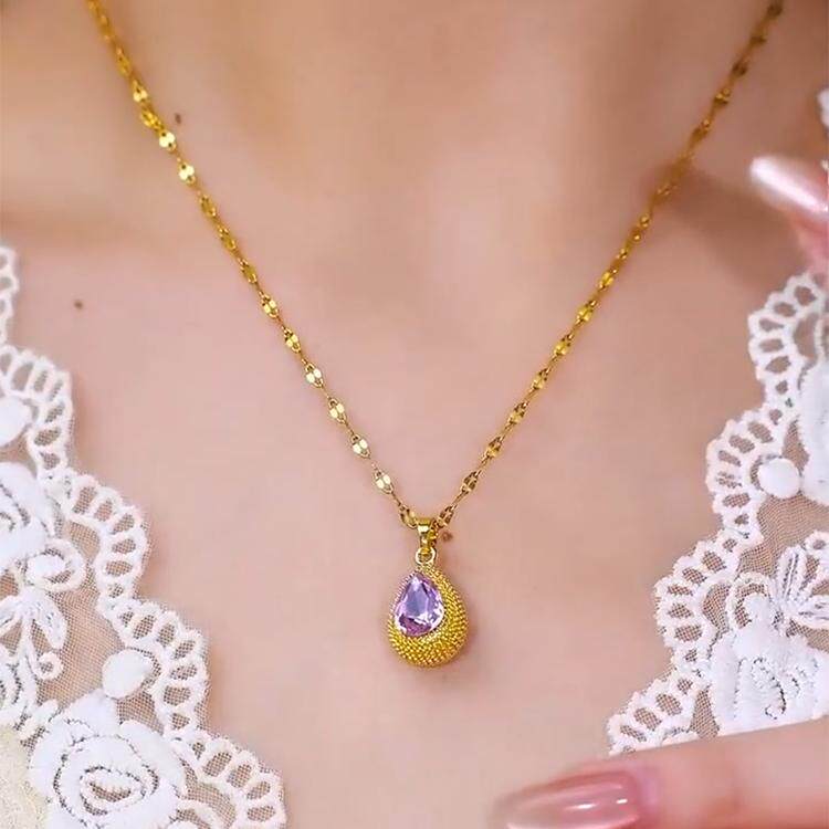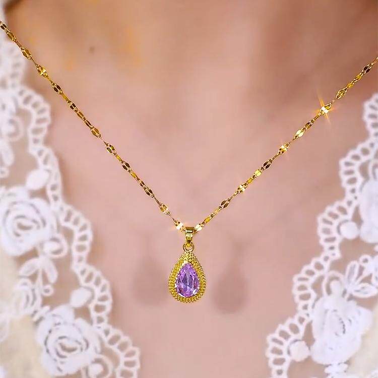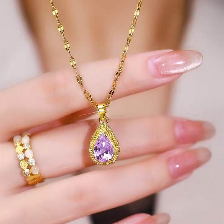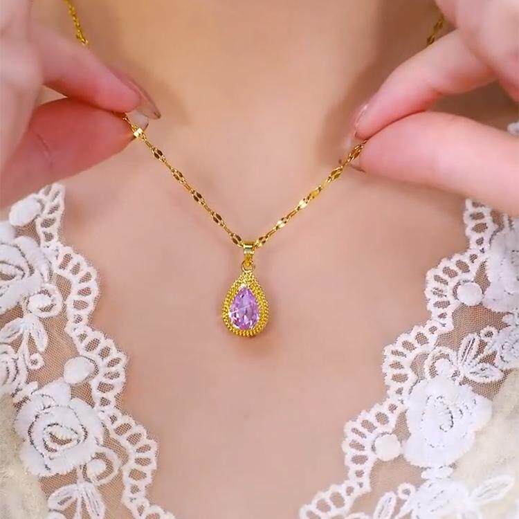 钛钢项链紫色水晶水滴吊坠洋气时尚百搭经典高级轻奢项链女七夕节