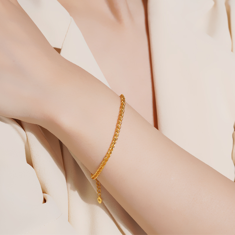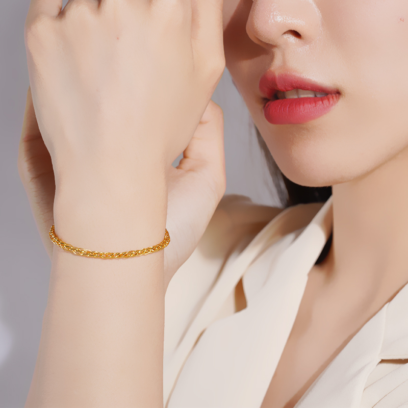 老庙黄金足金999时尚5G立体灯笼空气感编织手链时尚礼物官方正品