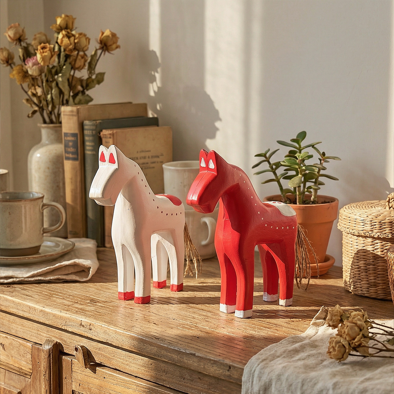白色木马木制圣诞节桌面创意可爱摆件吧台桌面造景装饰圣诞礼物