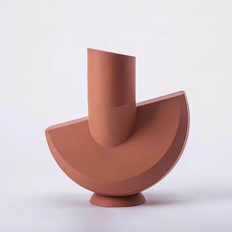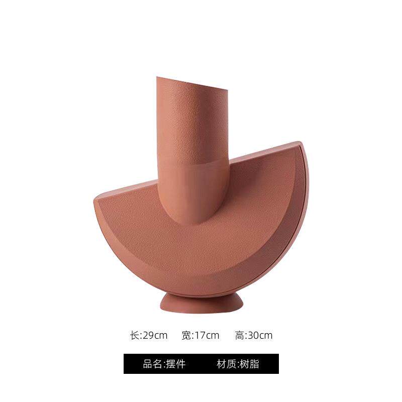 现代极简砖红色抽象几何树脂首饰架摆件家居样板房软装饰品摆设