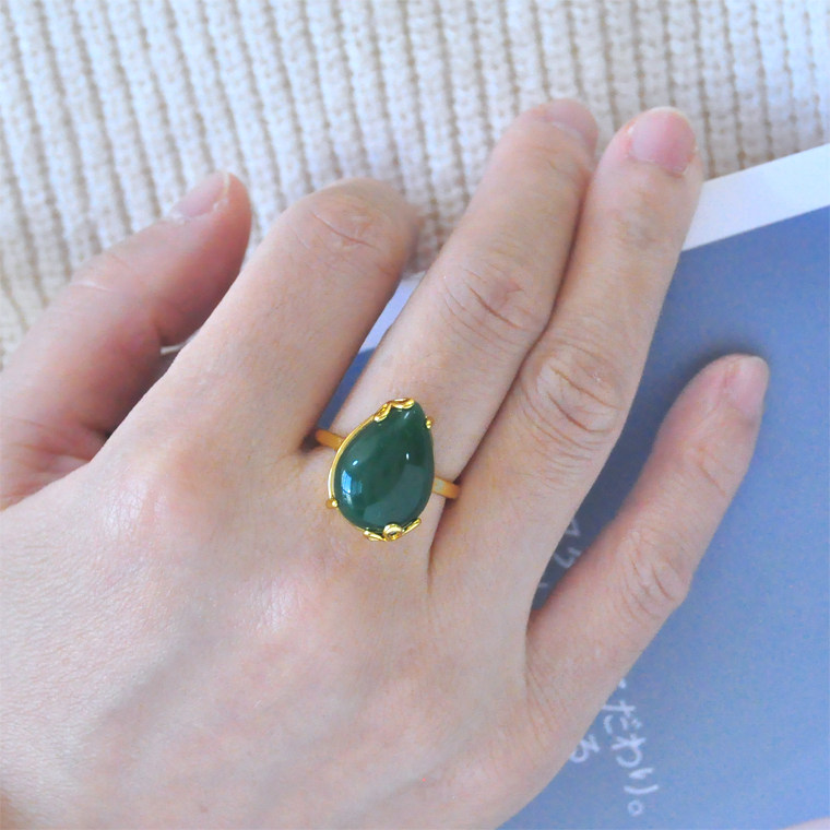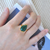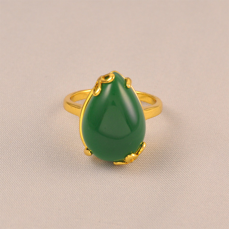 复古高贵镀24K金色戒指女镶嵌碧绿色时尚大气闭口戒指饰品送妈妈