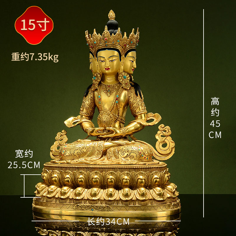 藏村全鎏金《大日如来》精工铜雕家用《毗卢遮那佛》铜像15寸摆件