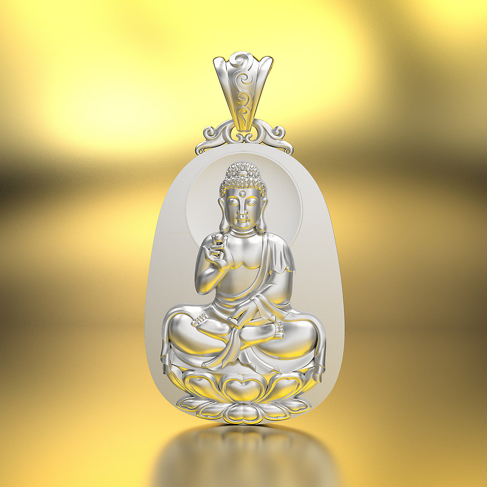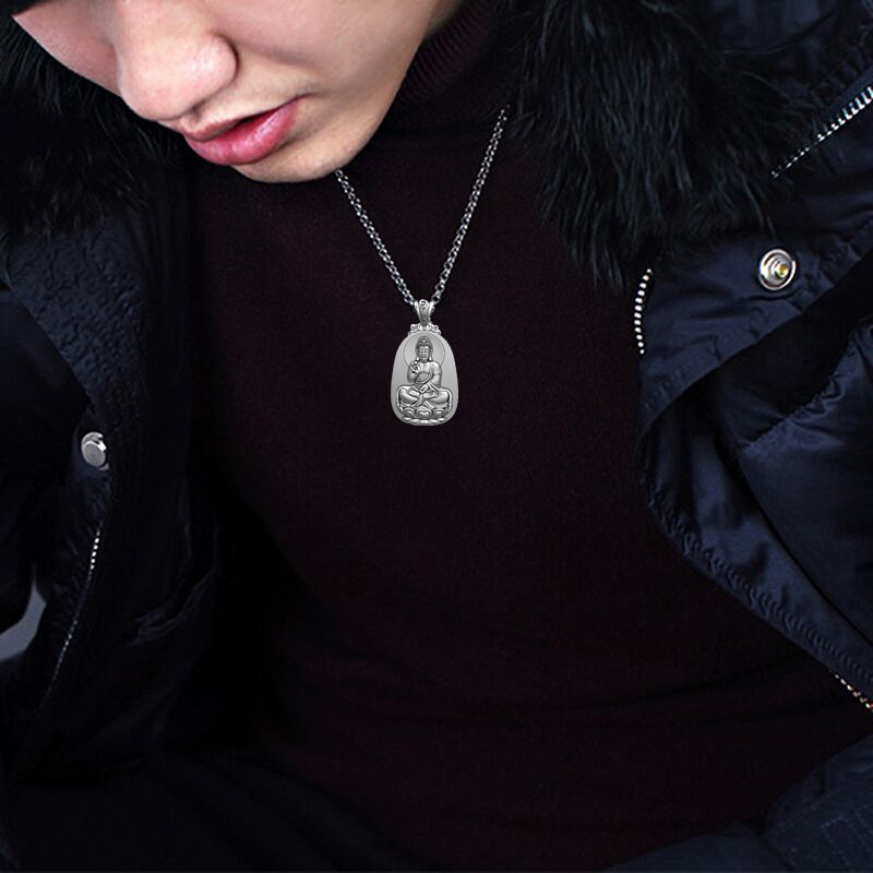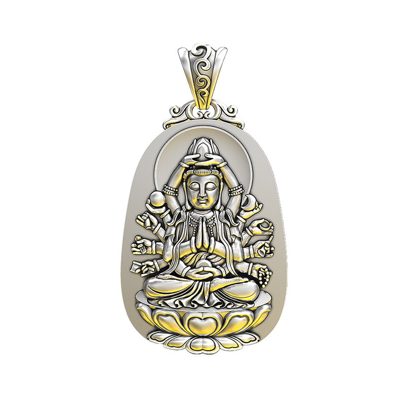 实心纯银 s999足纯银千手观音本命佛吊坠 八大守护神男士款项链