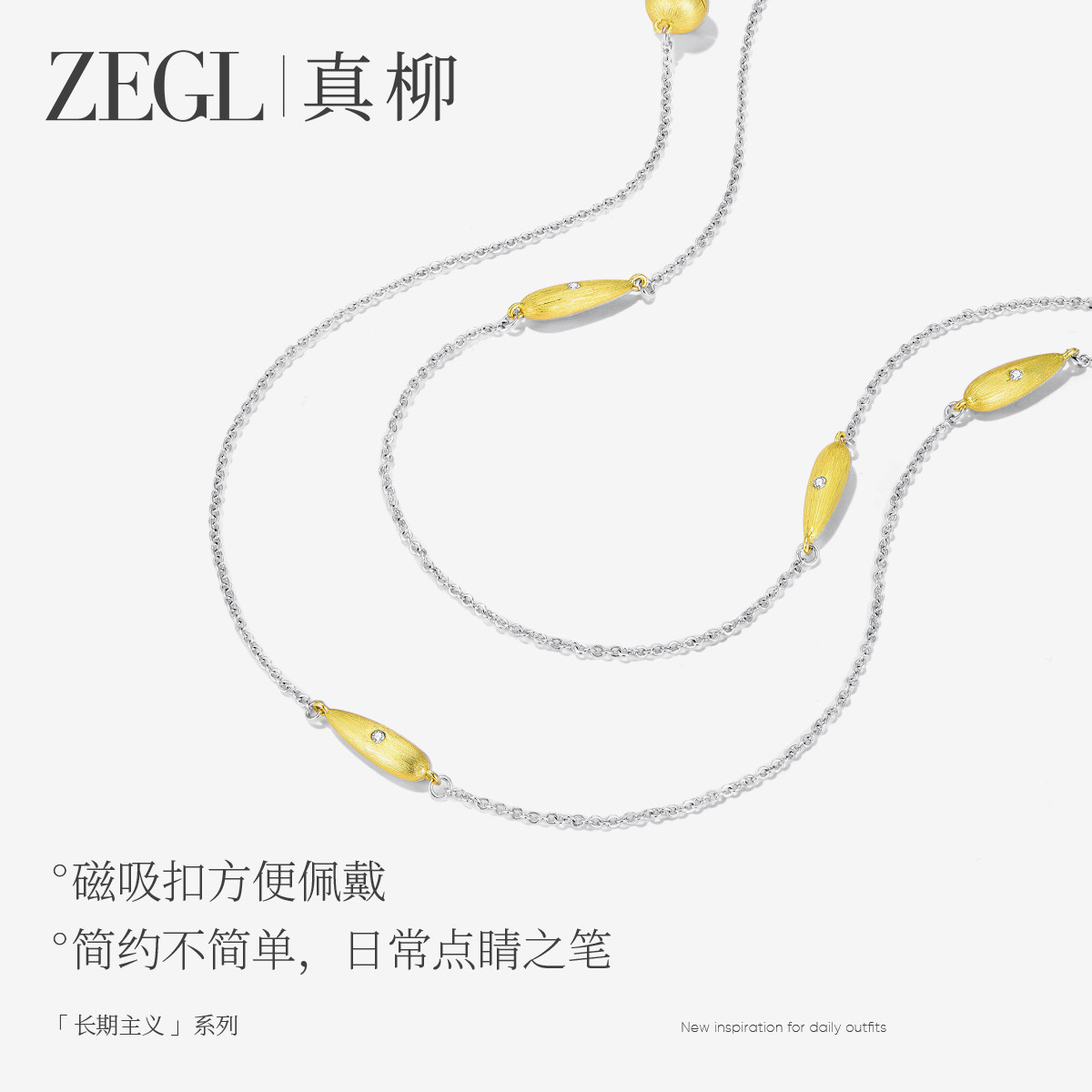 ZEGL真柳设计师长期主义系列镀14K金简约项链女轻奢毛衣链配饰品
