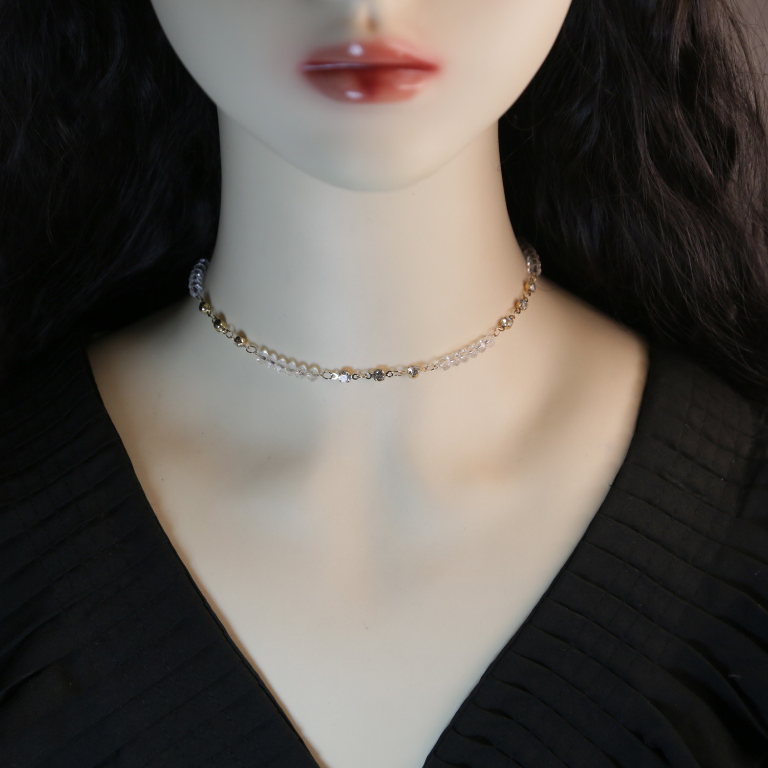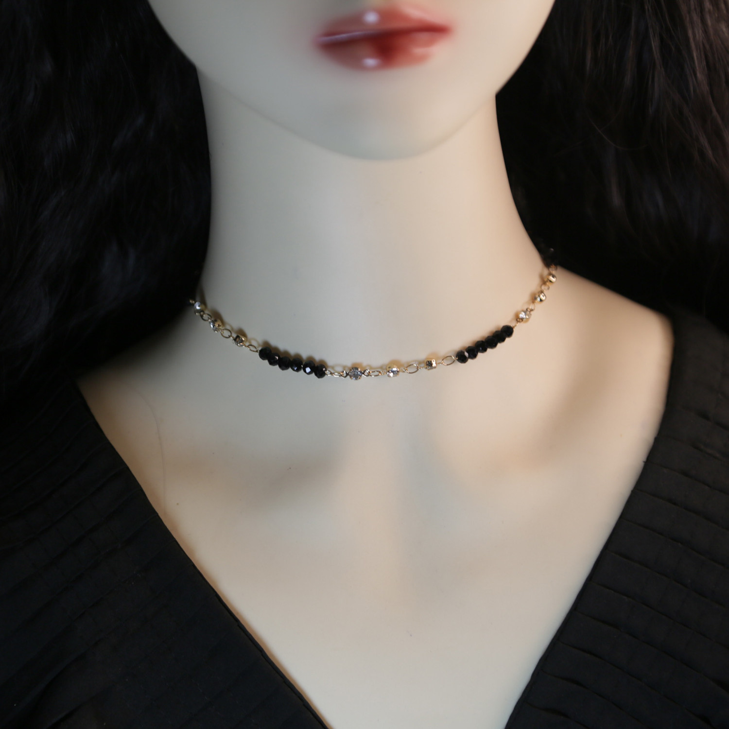 爆款森系串珠尖水晶石项链颈链设计复古锁骨项链黑色网红水钻