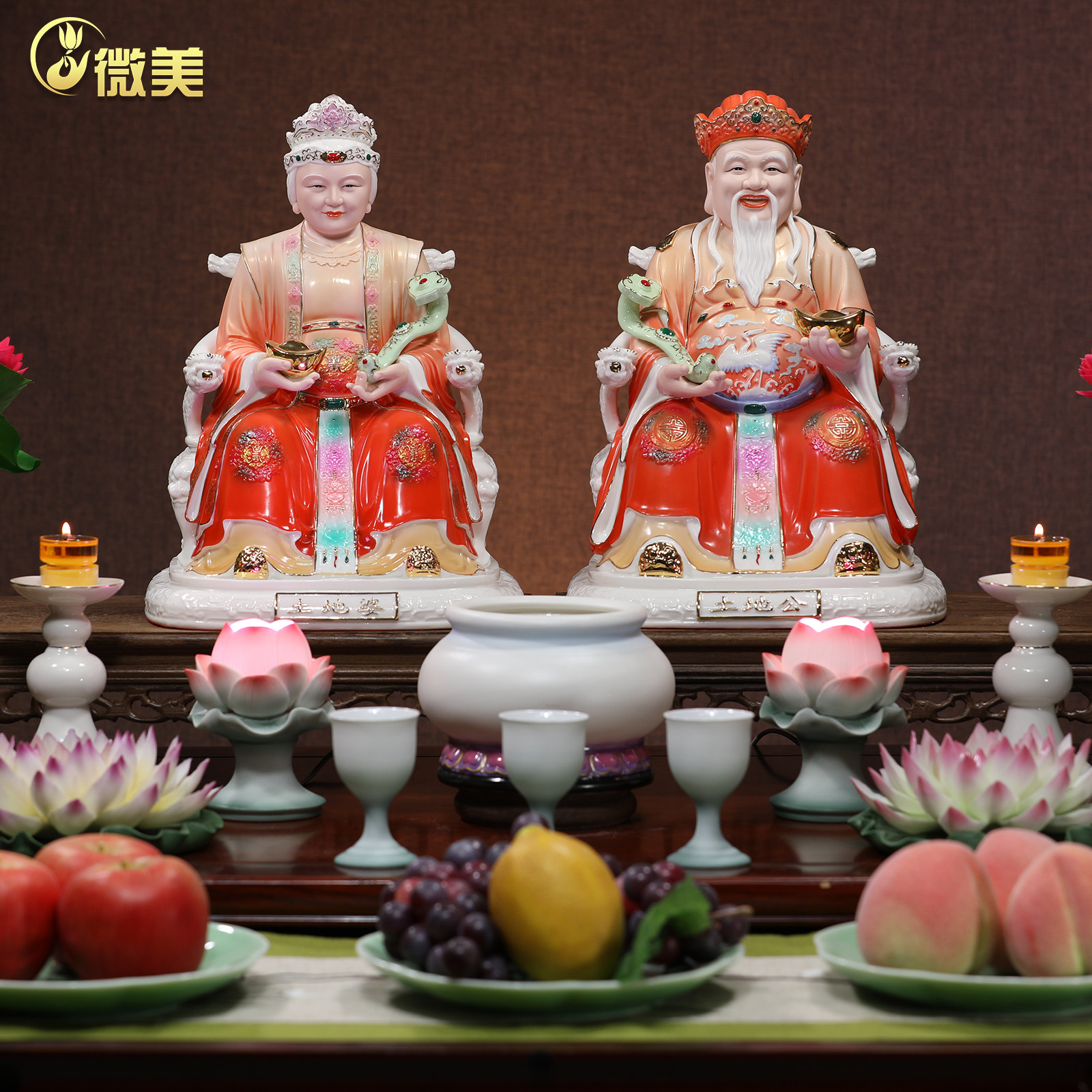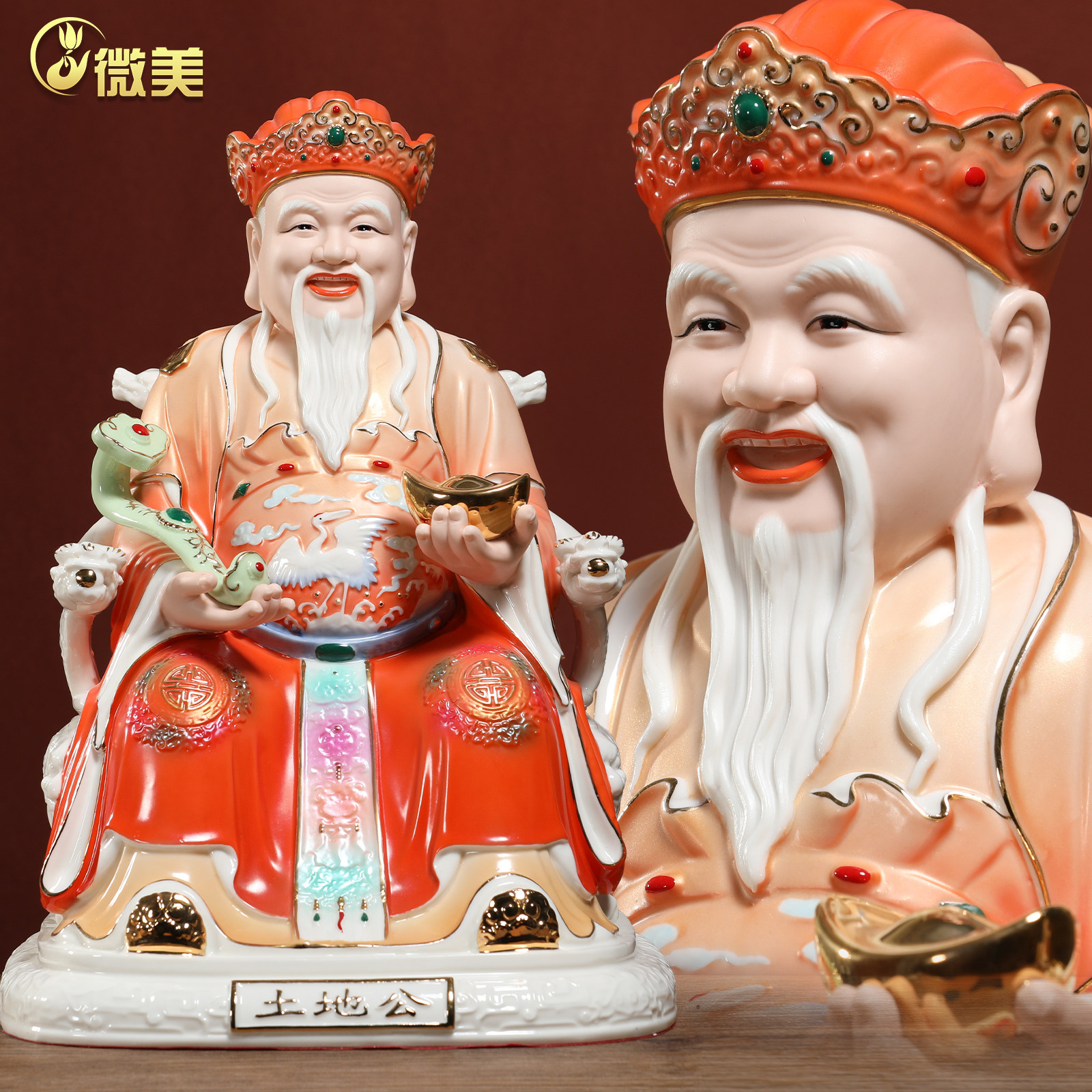 微美8至14寸土地公像土地婆神像土地爷爷奶佛像陶瓷家用供奉摆件