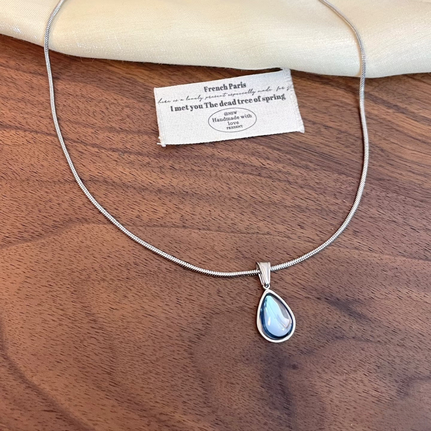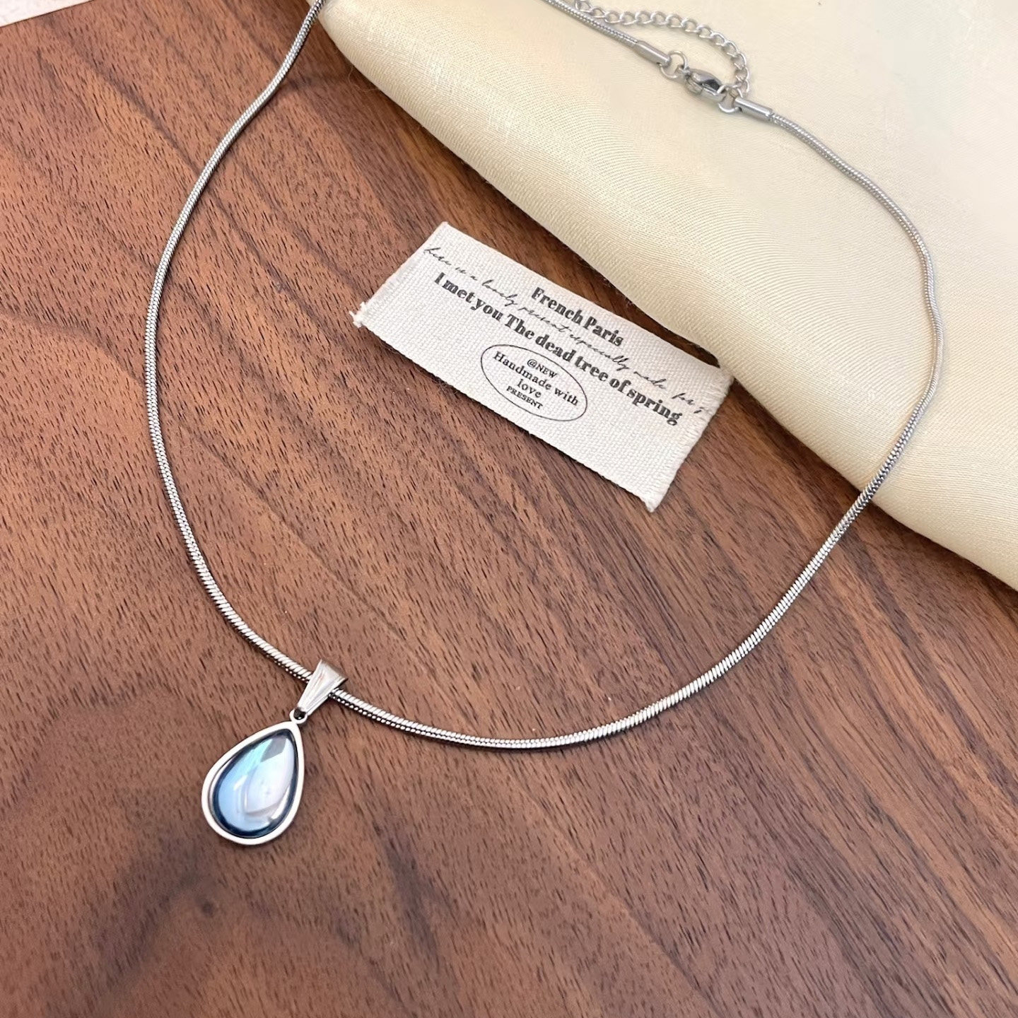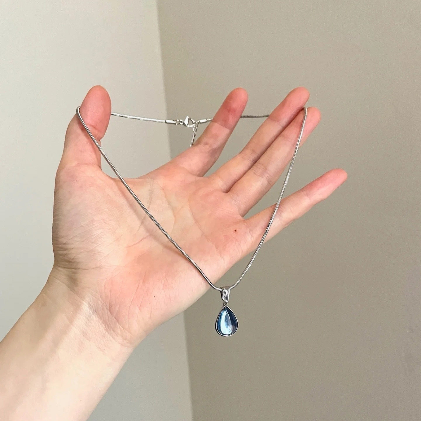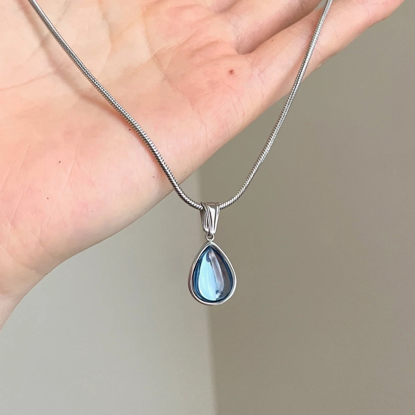 Vintage复古蓝色水滴吊坠项链高级感轻奢气质显白小众钛钢锁骨链
