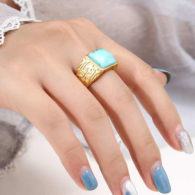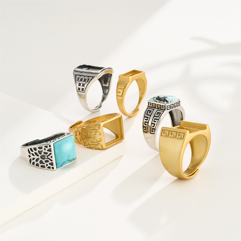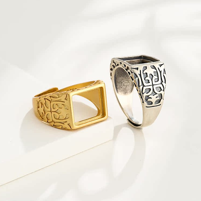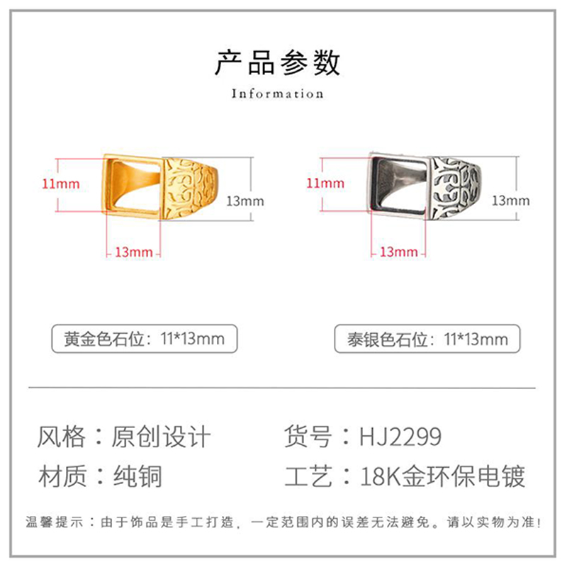 复古霸气方形戒指空托男镶嵌蜜蜡绿松石戒指托空托diy配件11*13mm