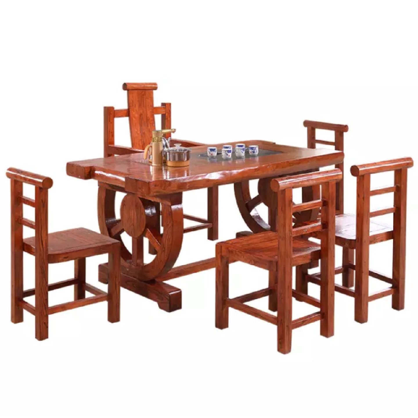 新中式老榆木茶桌椅组合酒店餐厅民宿客厅接待桌泡茶实木茶几茶台