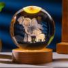 发光水晶球小夜灯usb接口实木底座3D内雕送学生送男生创意小摆件
