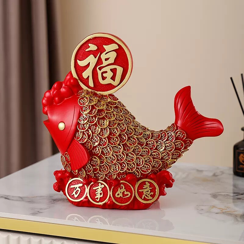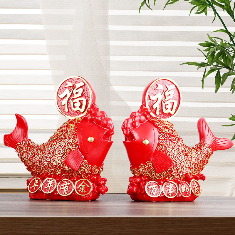 年年有余摆件红色鲤鱼福字寓意好的摆设客厅电视柜酒柜家居装饰品