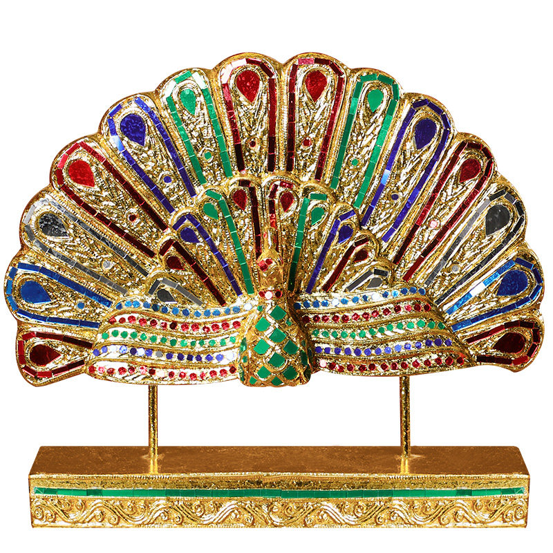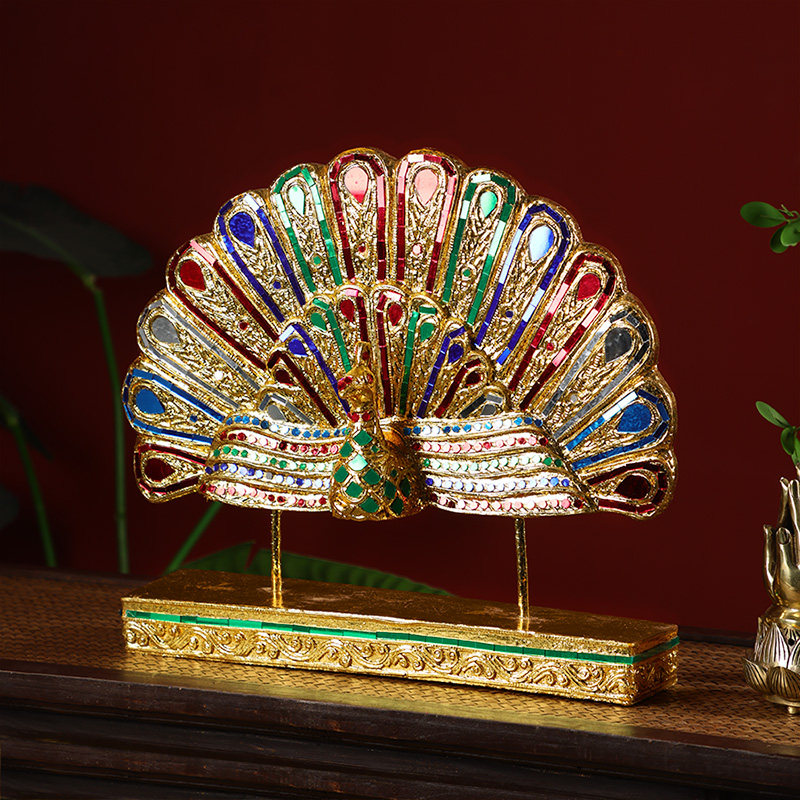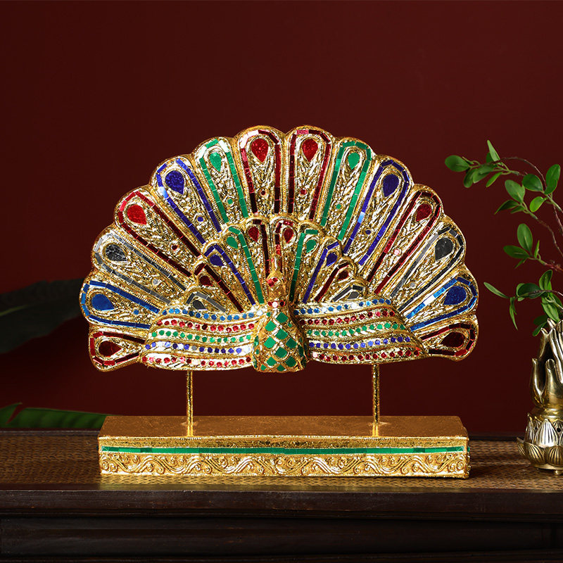 异丽客厅电视柜玄关泰式特色装饰品摆件泰国东南亚工艺品孔雀开屏