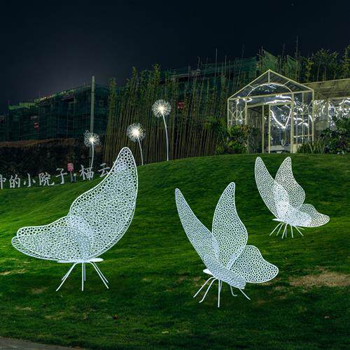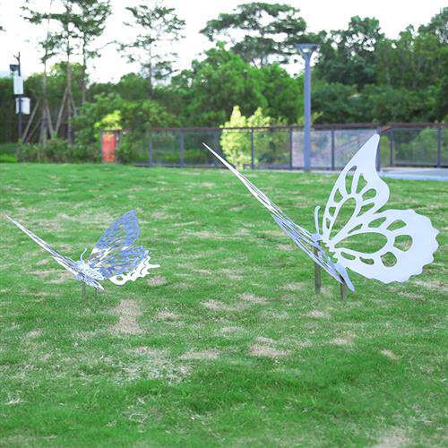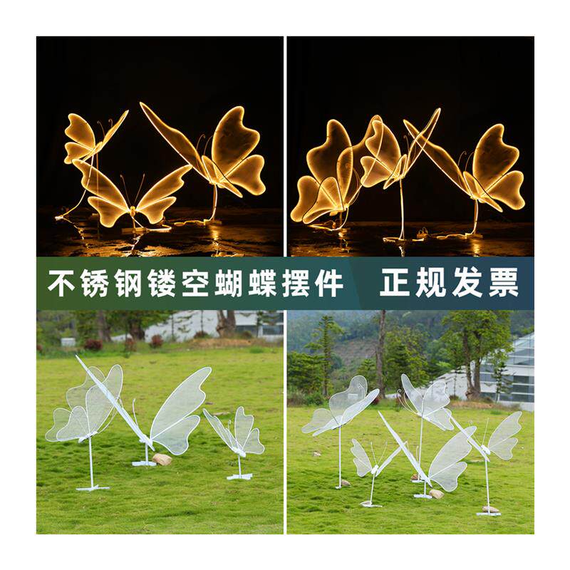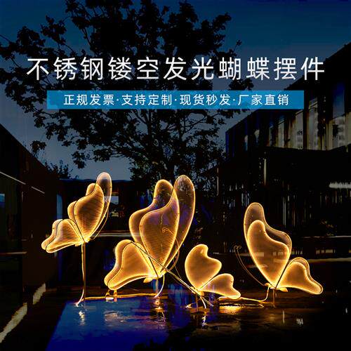 不锈钢镂空蝴蝶雕塑户外公园林草坪铁艺发光仿真镜面景观摆件装饰