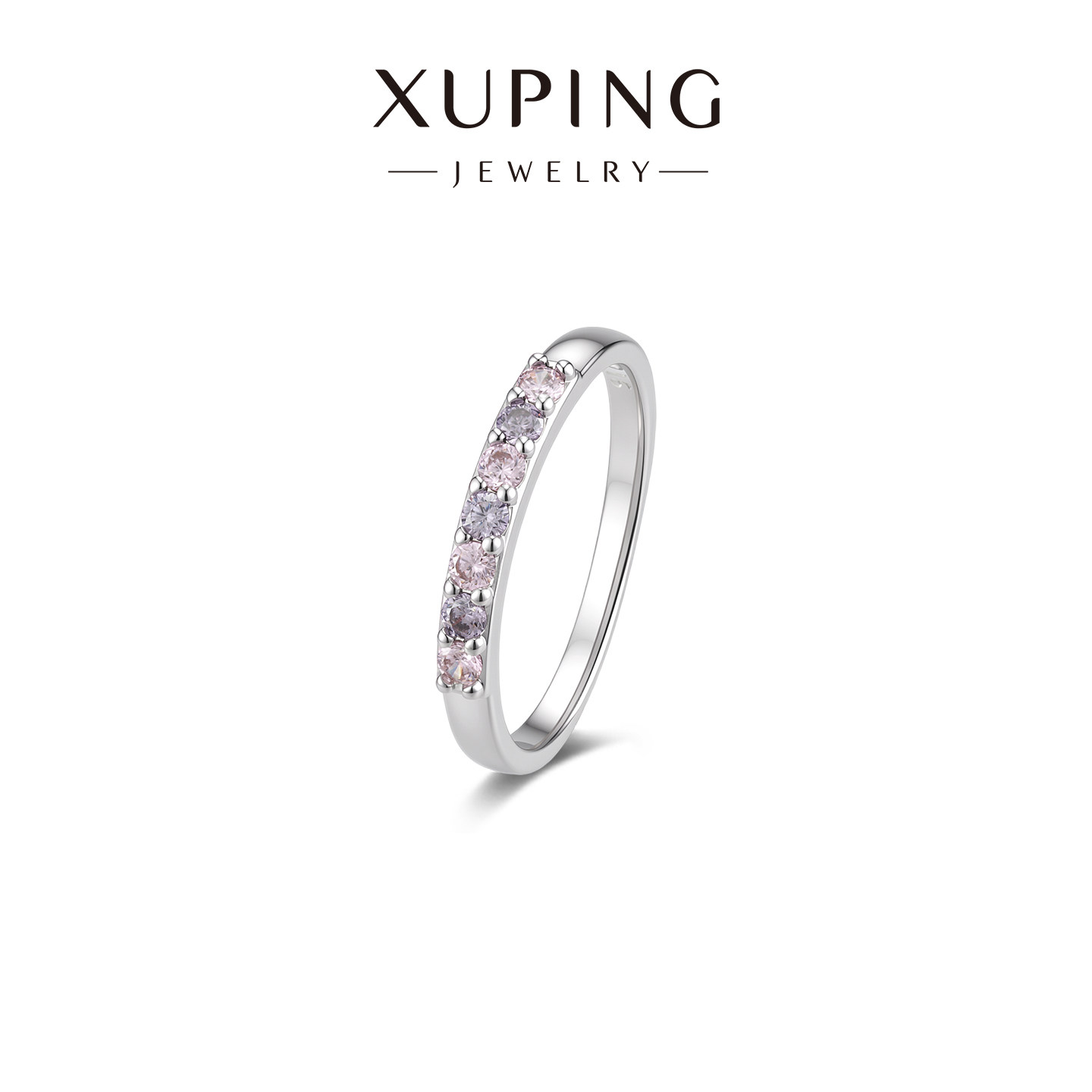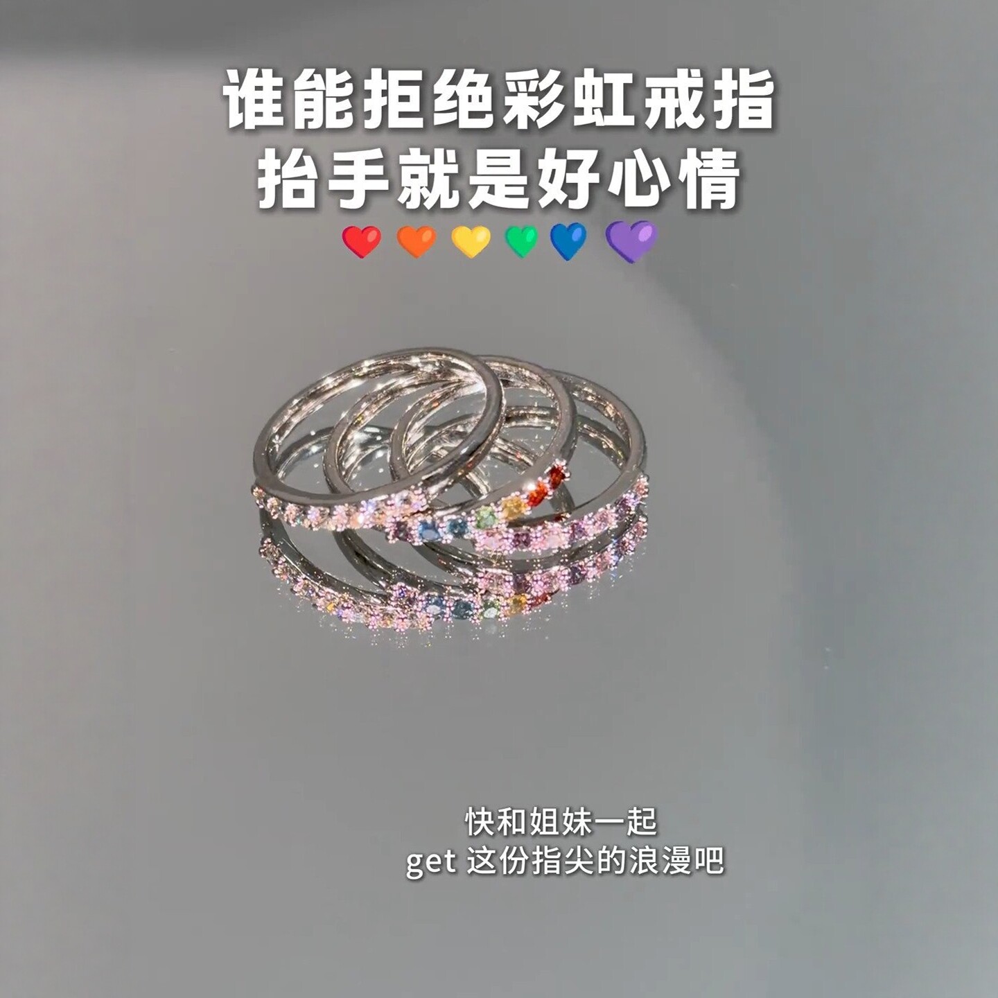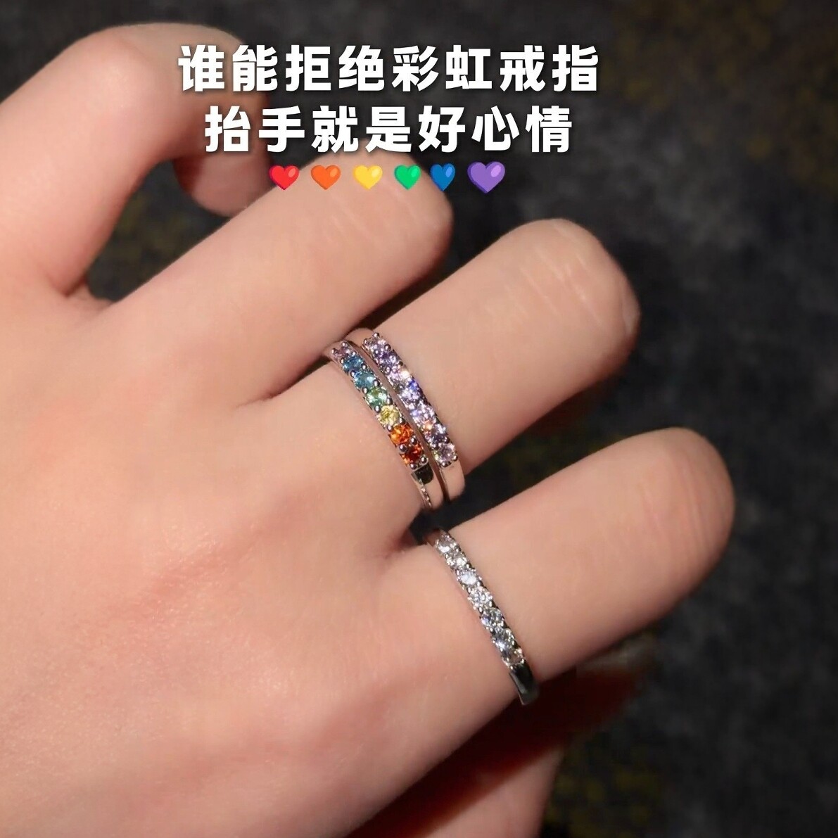 旭平【七色彩虹】半镶圆形戒指简约叠戴排戒高级感氛围感精致指环