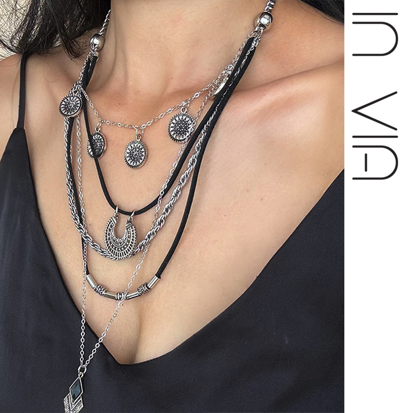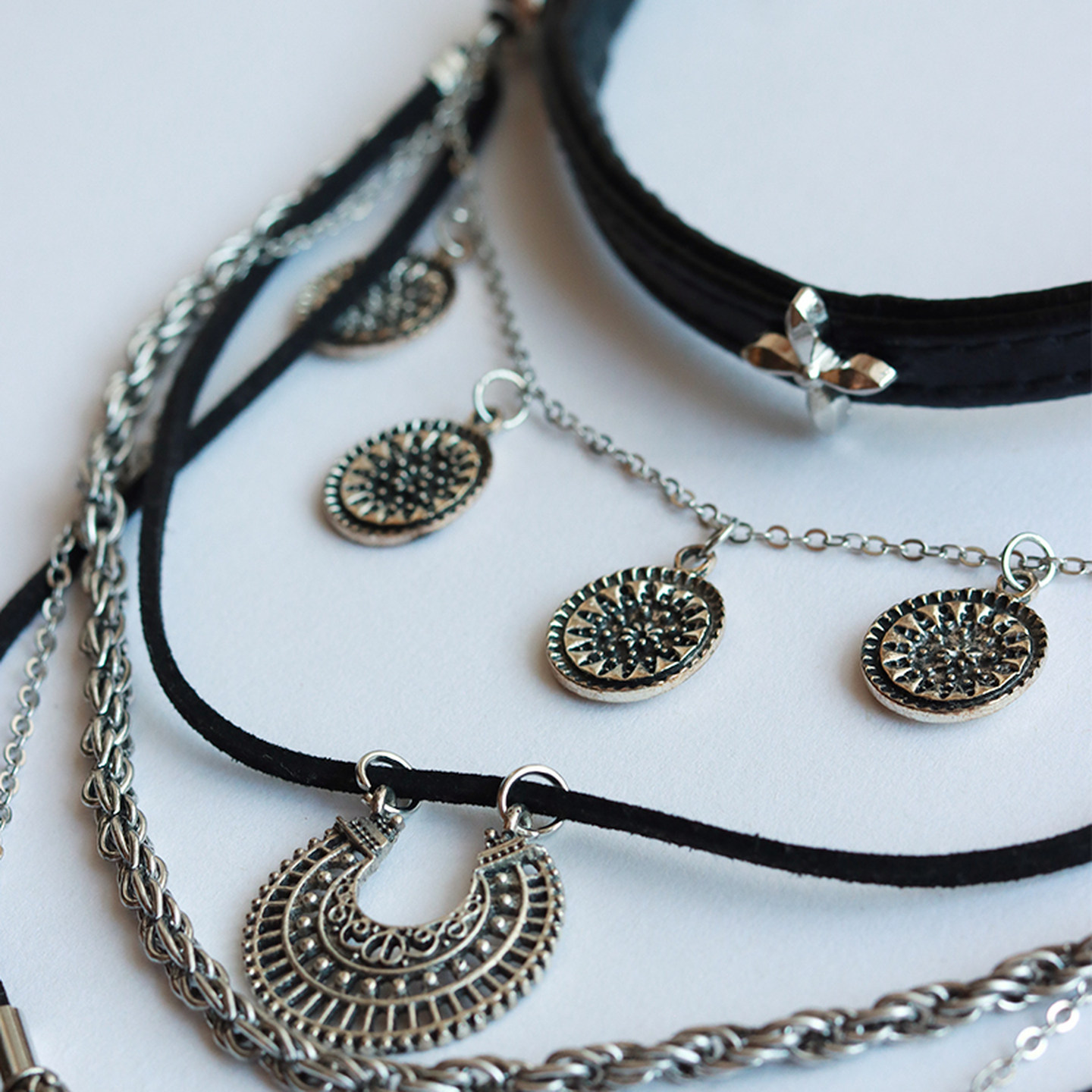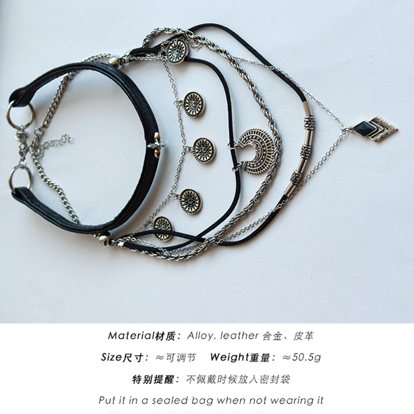 波西米亚复古民族风装饰黑色裙子项链甜酷辣妹风配饰多层叠戴夸张