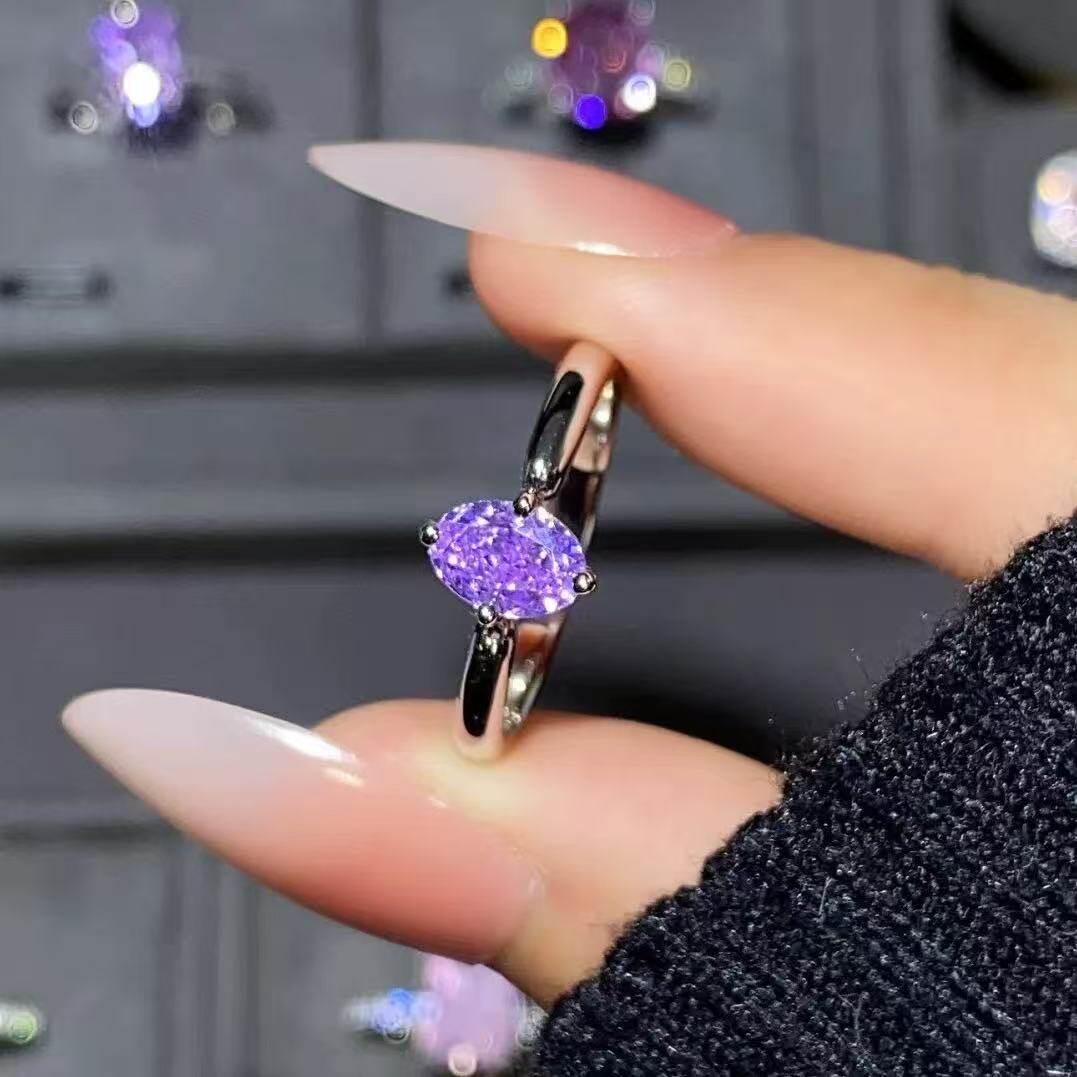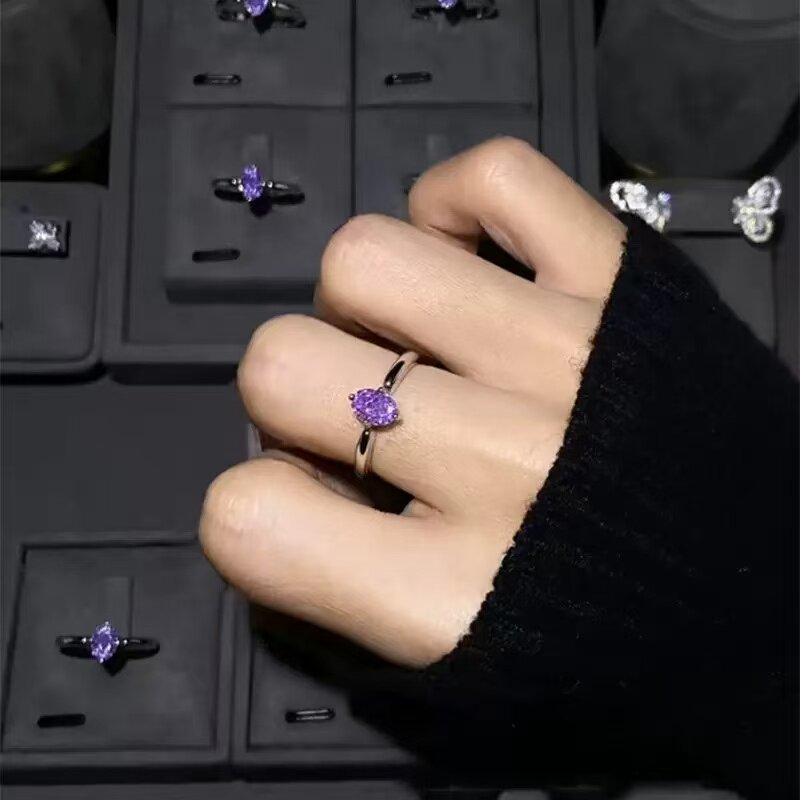 2026新款爆款紫气东来紫色水滴锆石戒指小众极简风高级感食指戒女