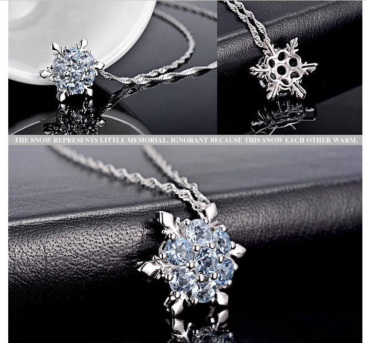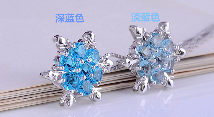 彩衣阁925纯银+蓝色雪花项链短款时尚闪亮甜美华丽日韩女漂亮饰品