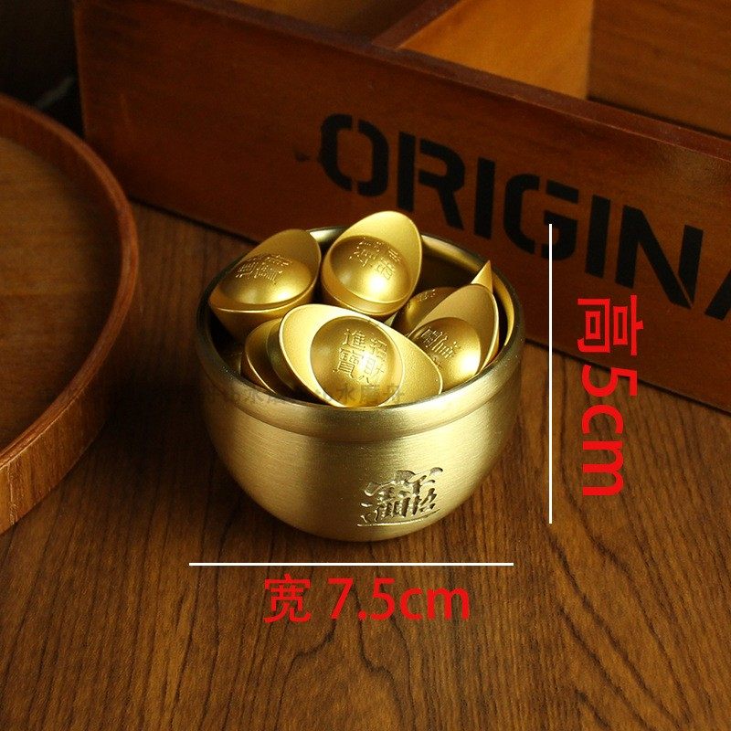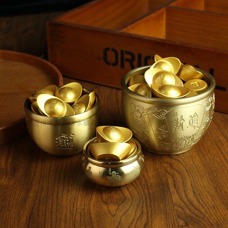 成品米缸纯铜黄铜聚宝盆金元宝五路财神招财进宝缸居家用聚财摆件